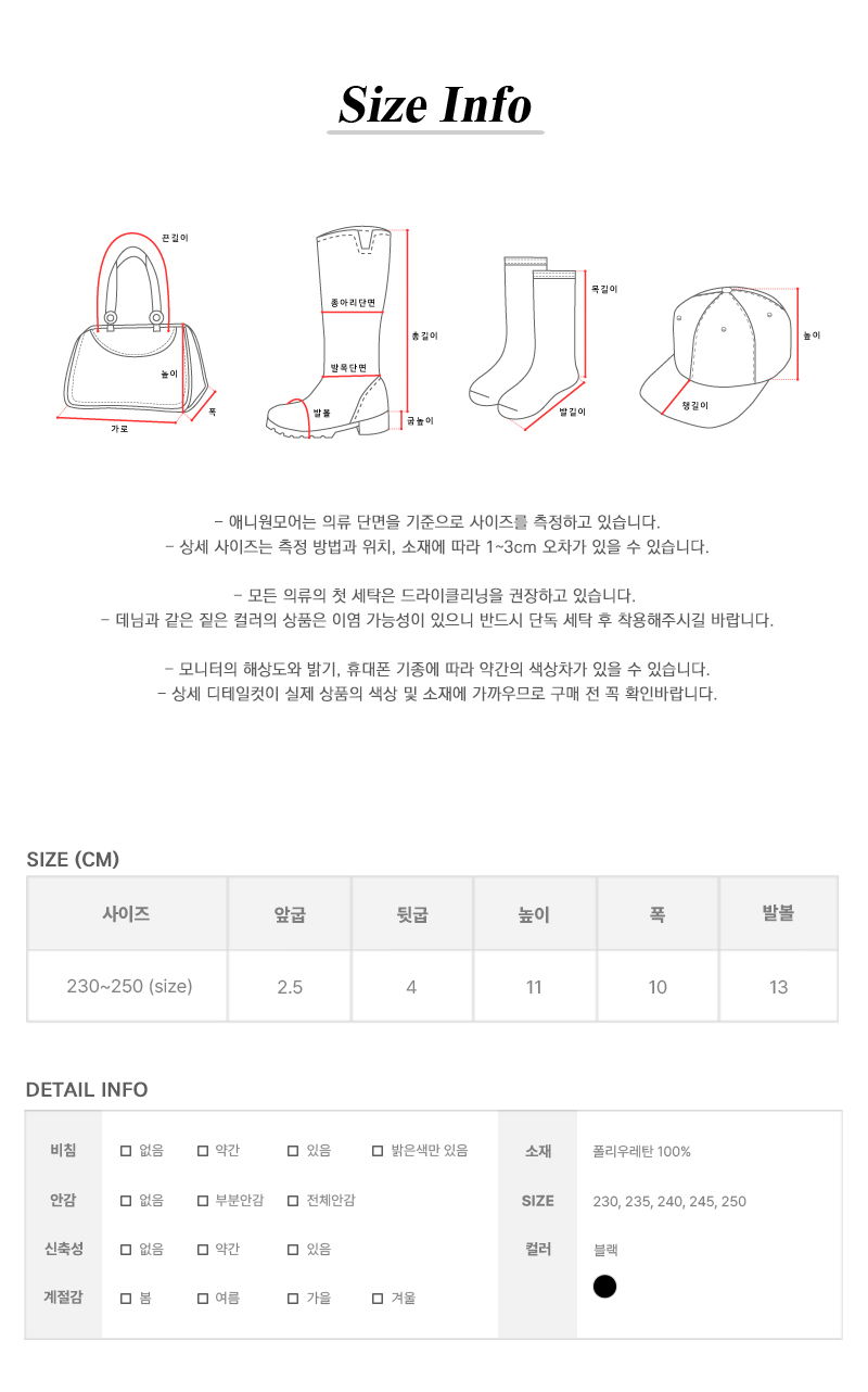 제품 측정 방법에 따라 1~3cm 오차가 발생할 수 있으며, 사이즈는 단면으로 측정됩니다 |