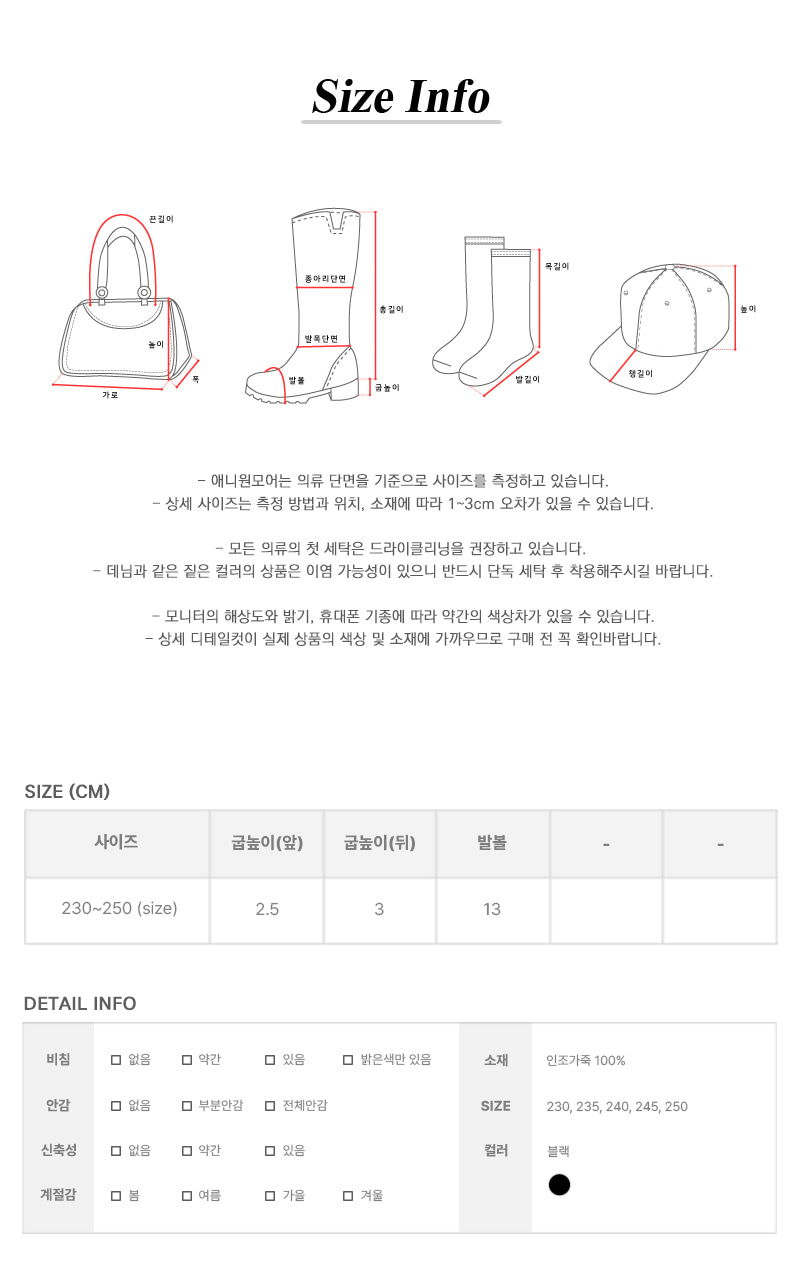| 제품 측정 방법에 따라 1~3cm 오차가 발생할 수 있으며, 사이즈는 단면으로 측정됩니다 | ||