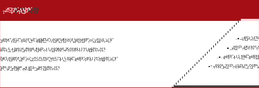 · 데님 및 컬러 제품은 이염 방지를 위해 단독 세탁을 권장합니다.