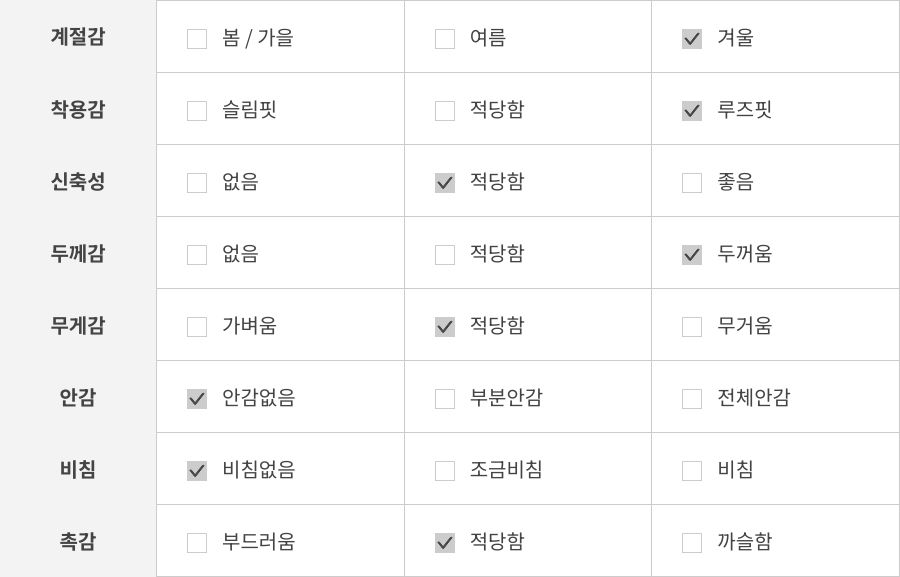 | 사이즈 | 어깨너비 | 가슴 | 총길이 |