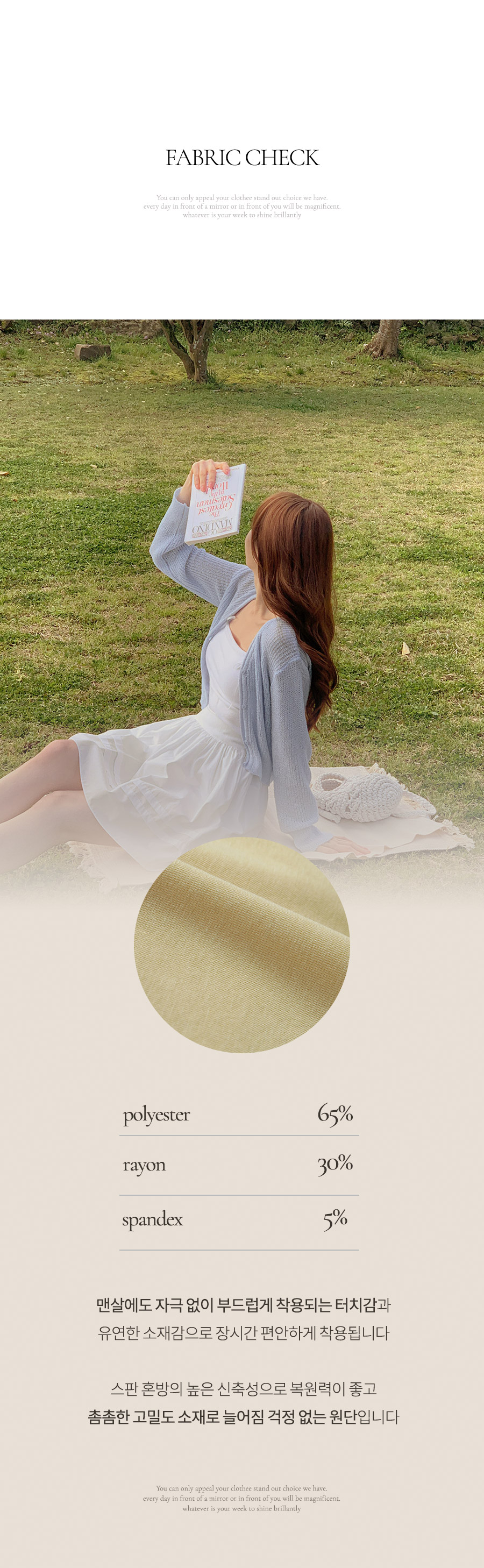 FABRIC : 폴리(Polyester)65% 레이온(Rayon)30% 스판(Spandex)5%