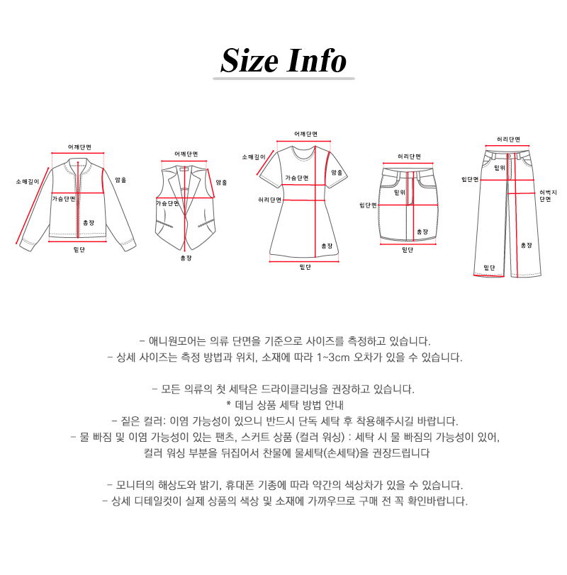 | 제품 측정 방법에 따라 1~3cm 오차가 발생할 수 있으며, 사이즈는 단면으로 측정됩니다 | |||