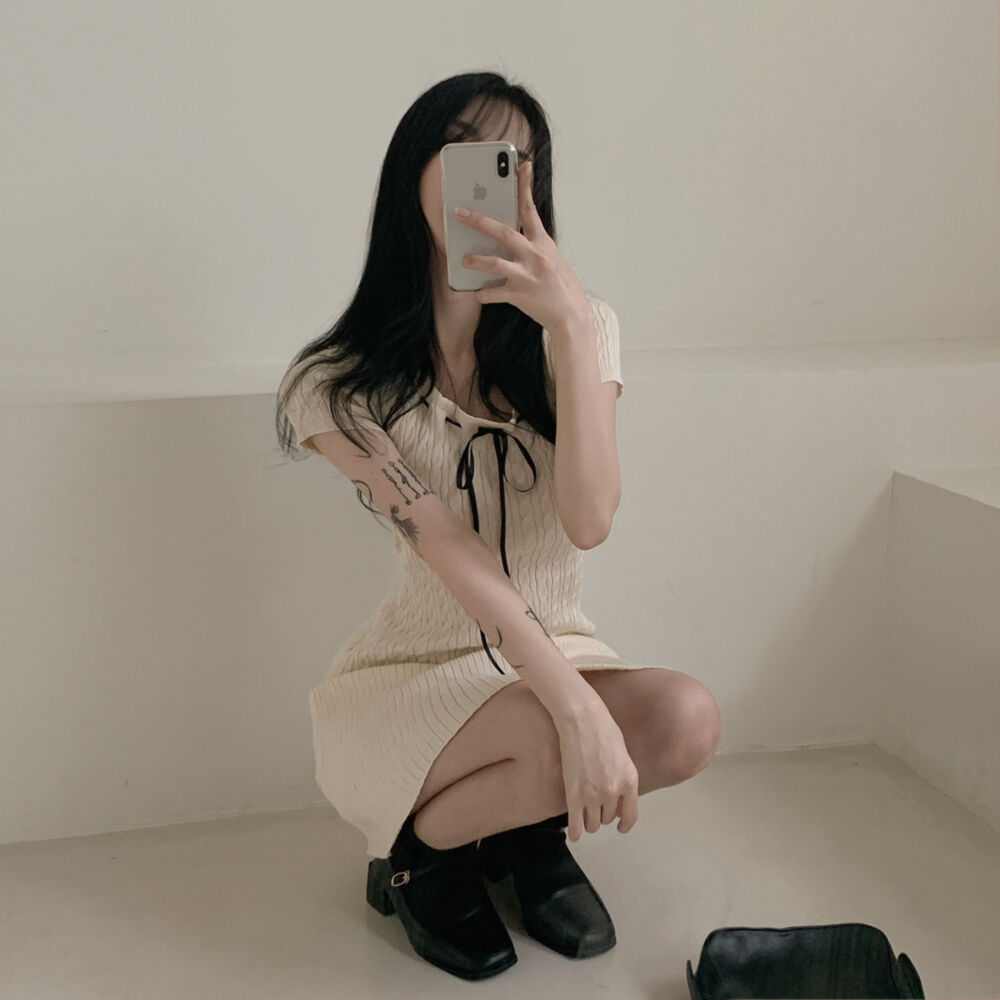 간절기에는 아우터안에 입기좋은 니트 미니원피스!
