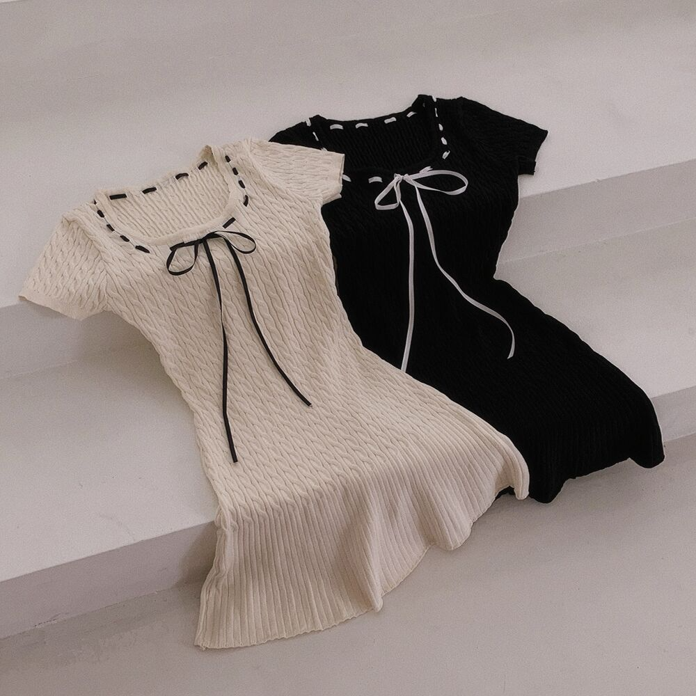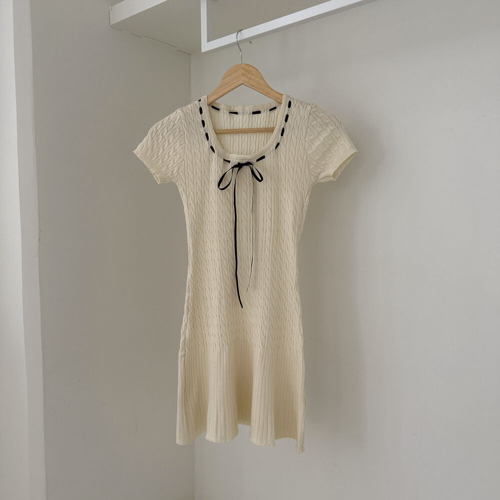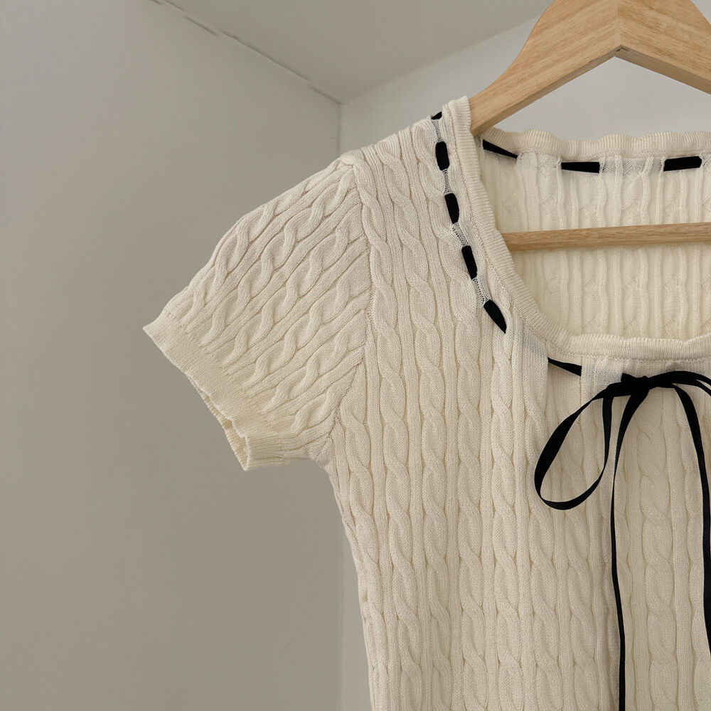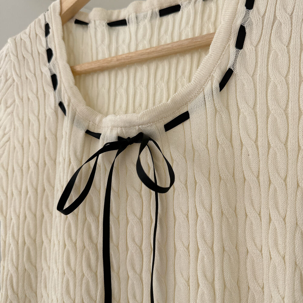 넥라인 스티치 디테일과 리본 포인트로 밋밋하지 않는 포인트!