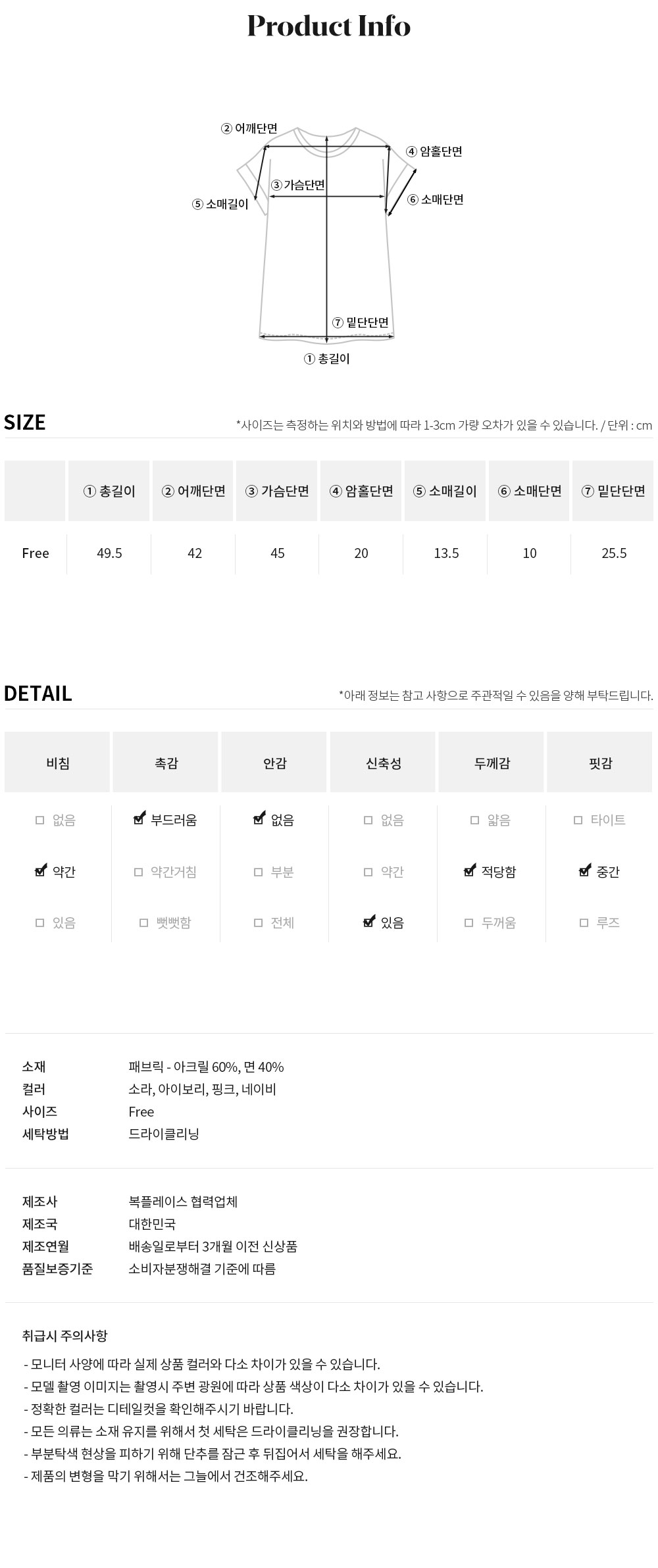 | 사이즈 | 어깨너비 | 가슴 | 암홀 | 팔길이 | 총길이 |