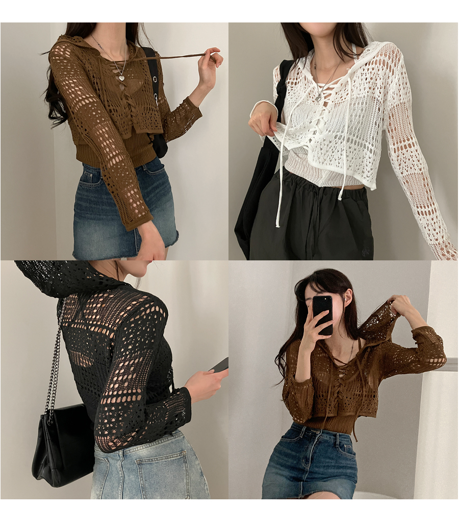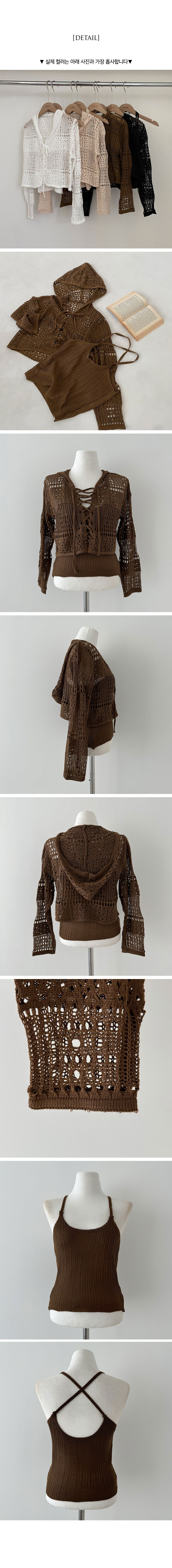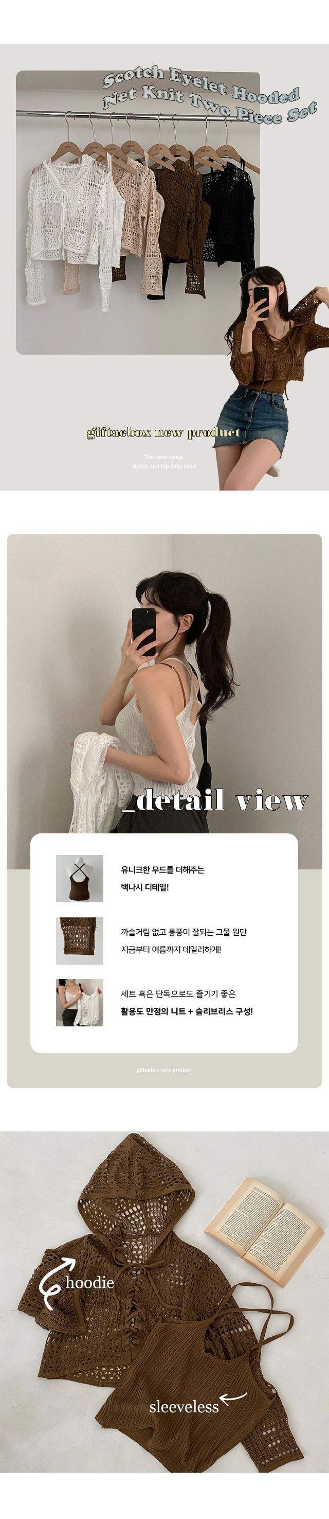 스카시 아일렛 후드 네트 니트 투피스 세트*.*