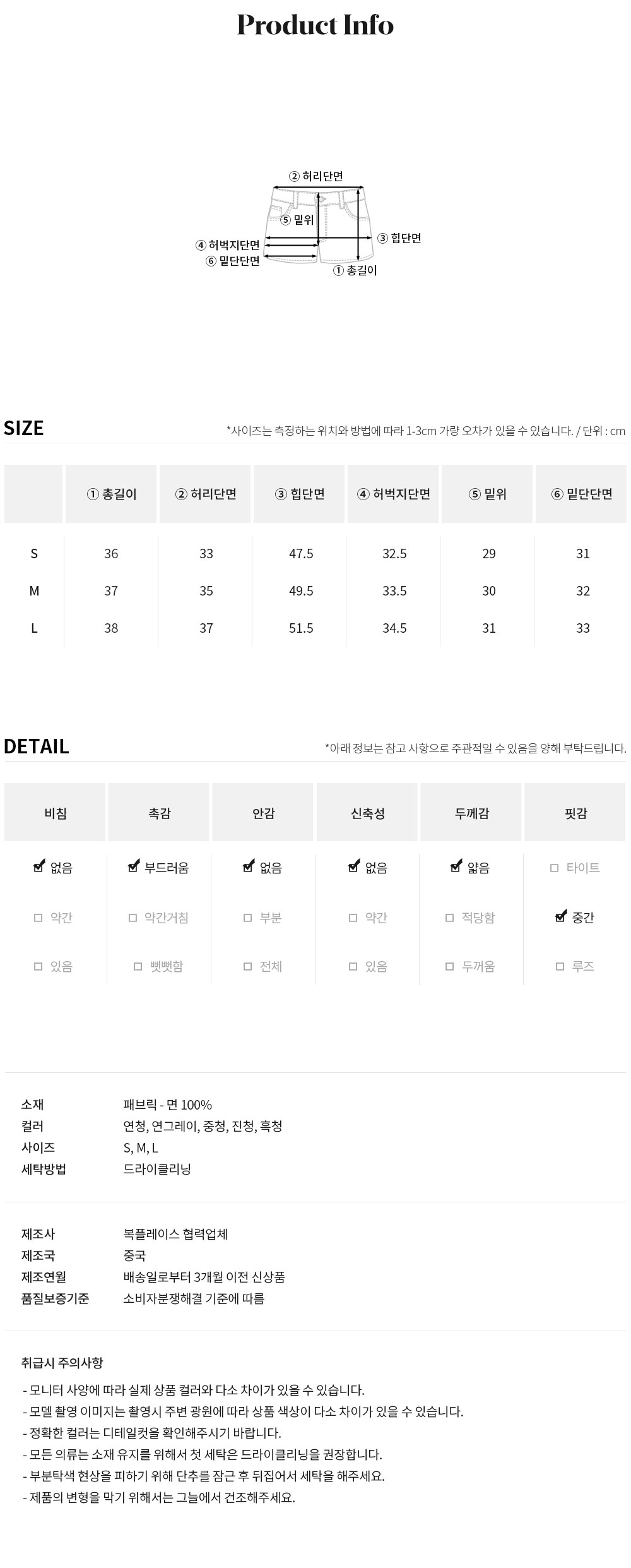 | 사이즈 | 허리 | 힙 | 밑위 | 허벅지 | 총길이 |