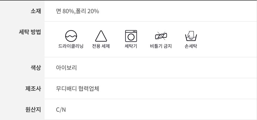 · 모든 의류의 첫 세탁은 드라이크리닝을 추천하며, 세탁 후 착용 부탁 드립니다.
