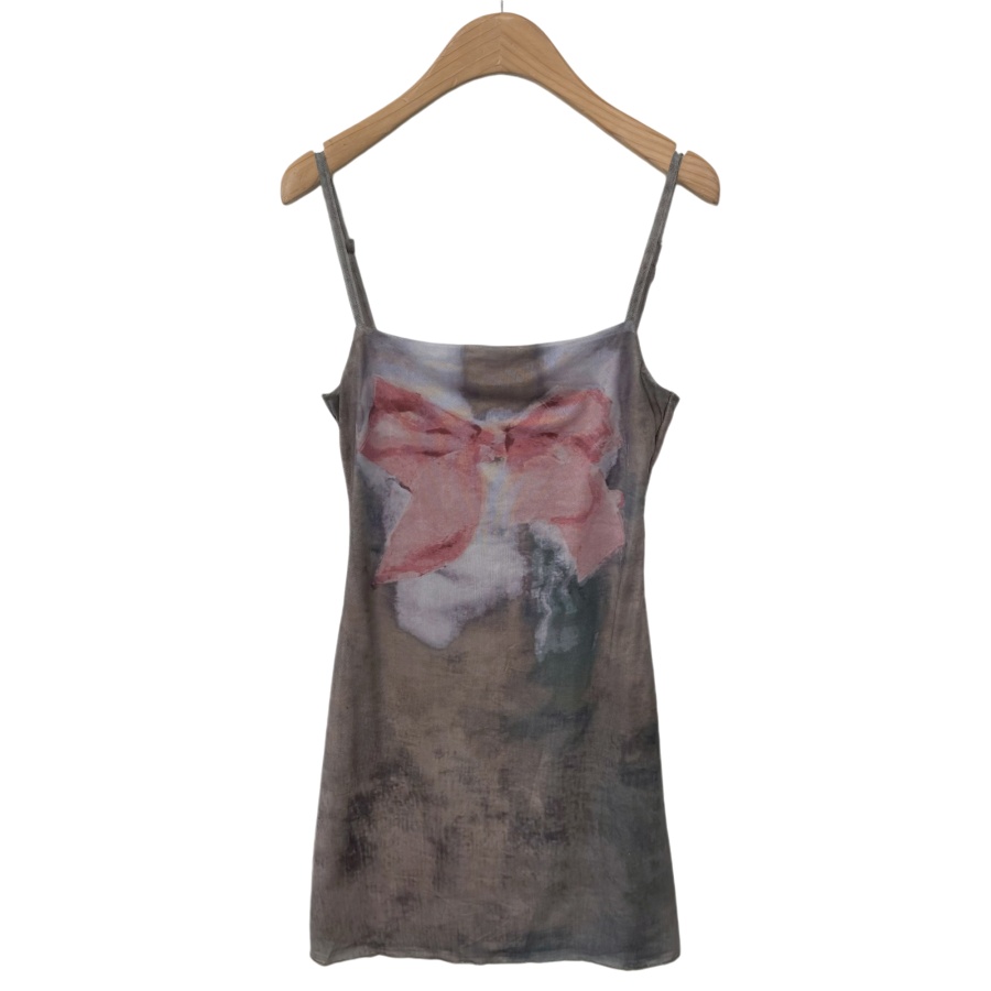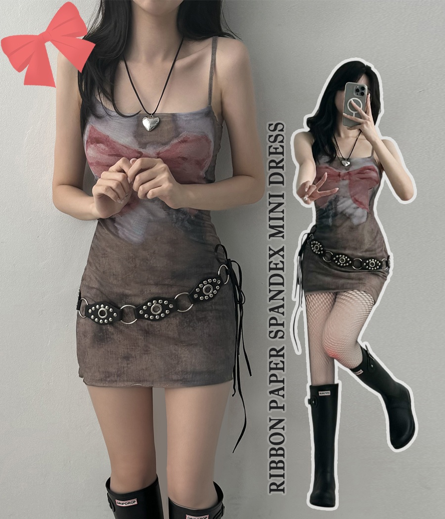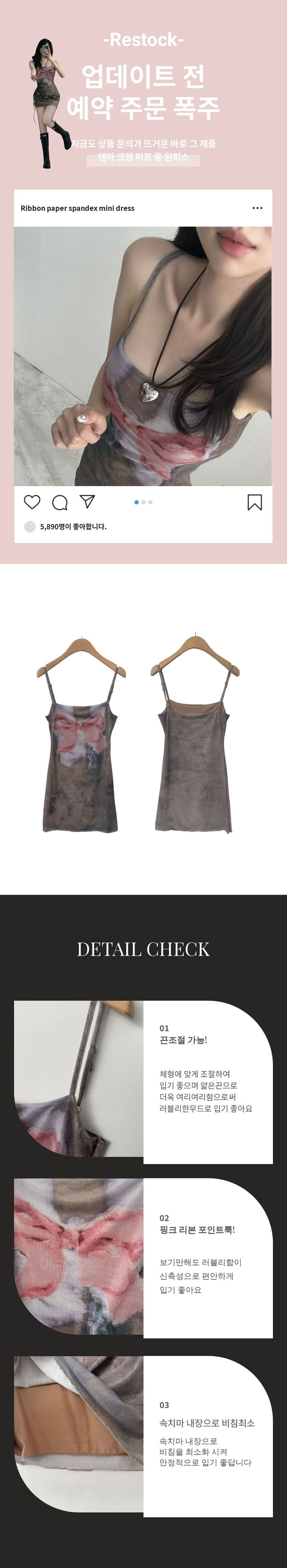 Y2K 샌드 리본 스판 뷔스티에 끈나시 원피스에요