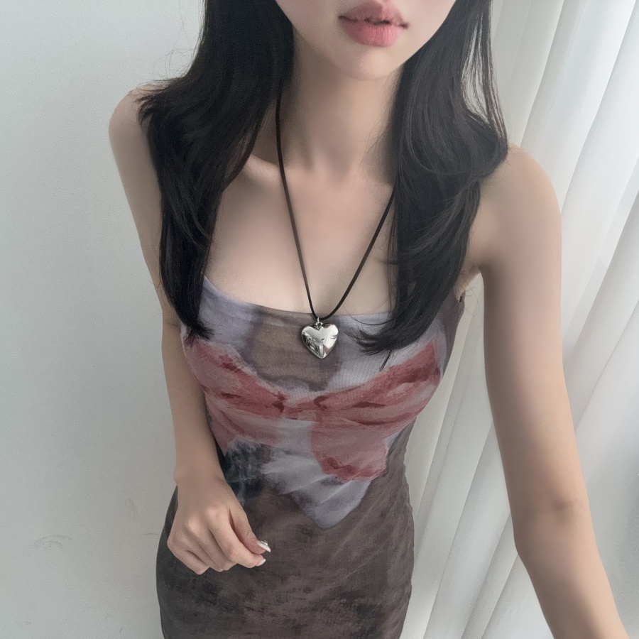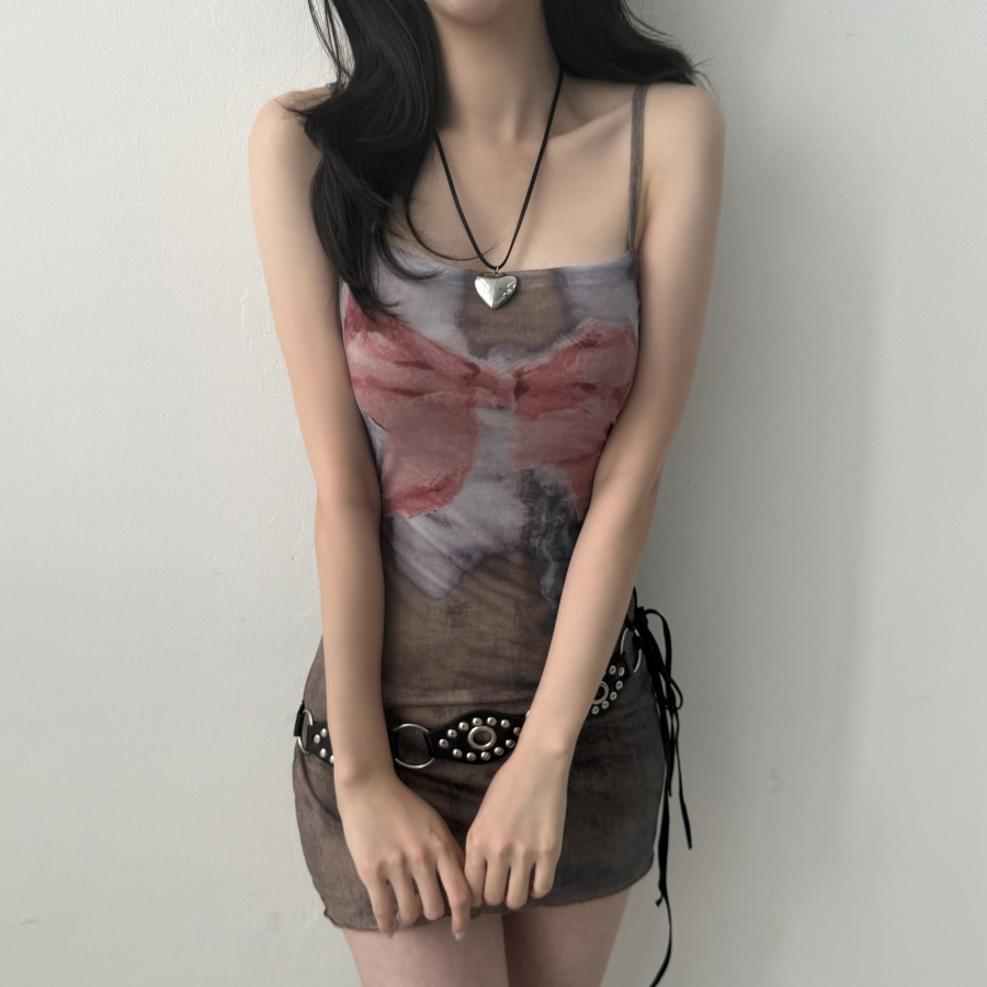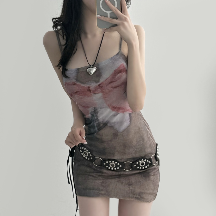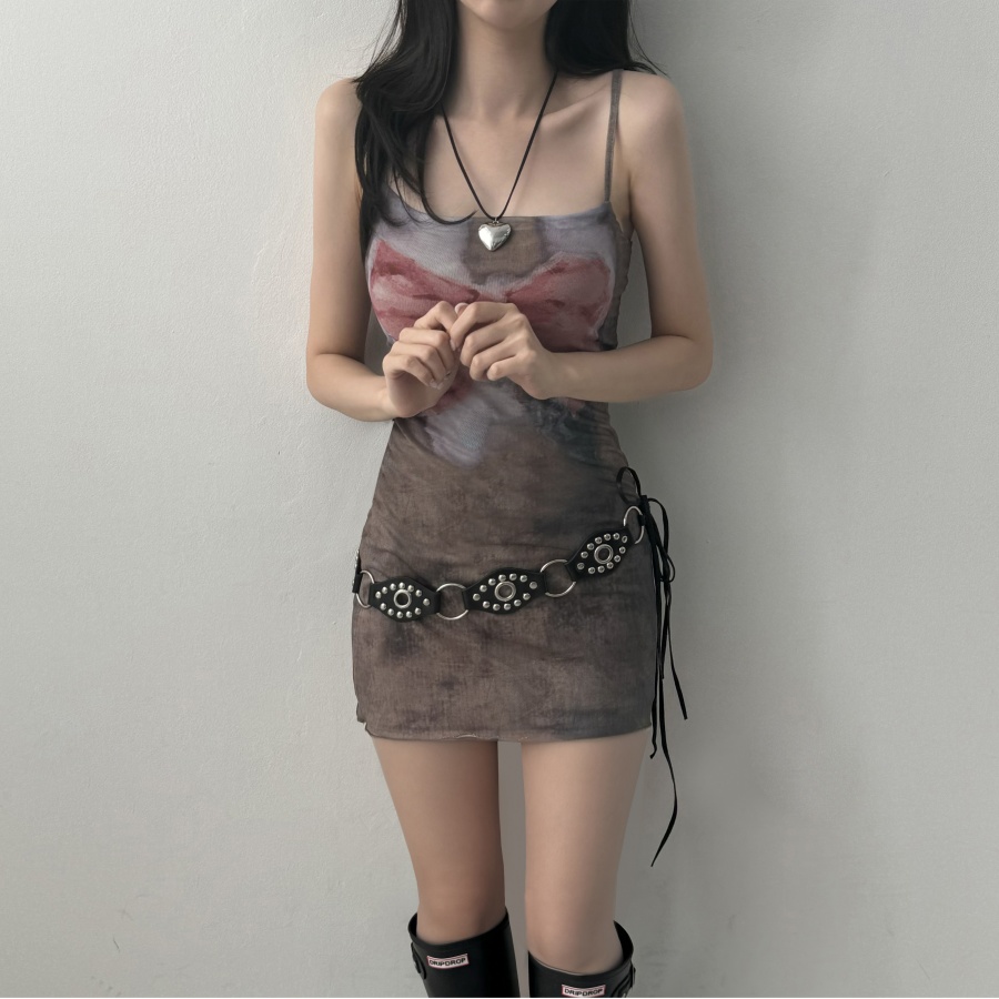 Y2K 샌드 리본 스판 뷔스티에 끈나시 원피스에요