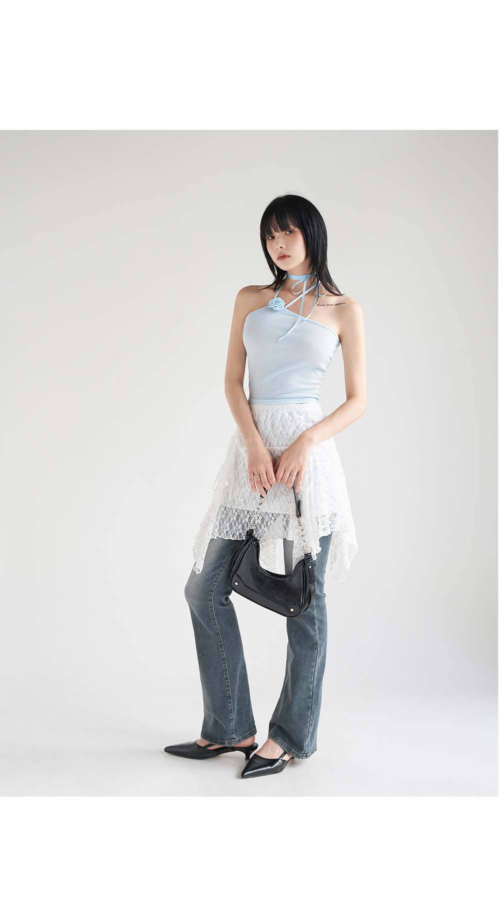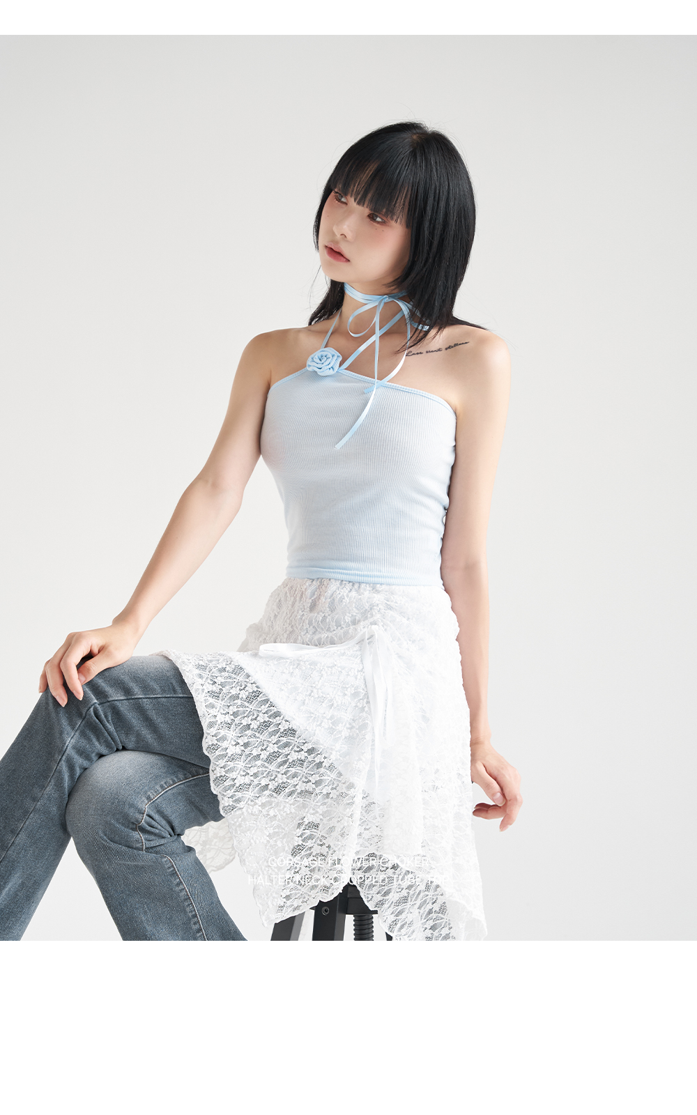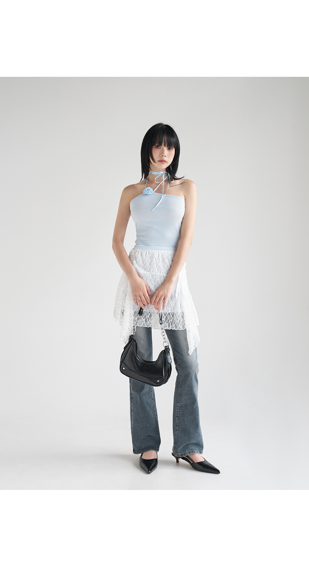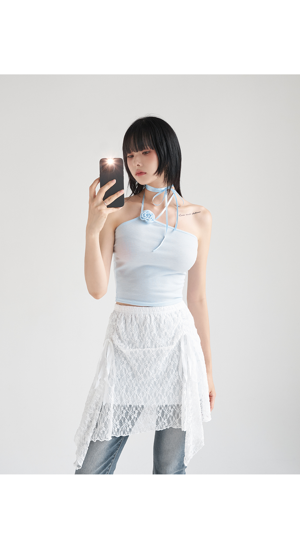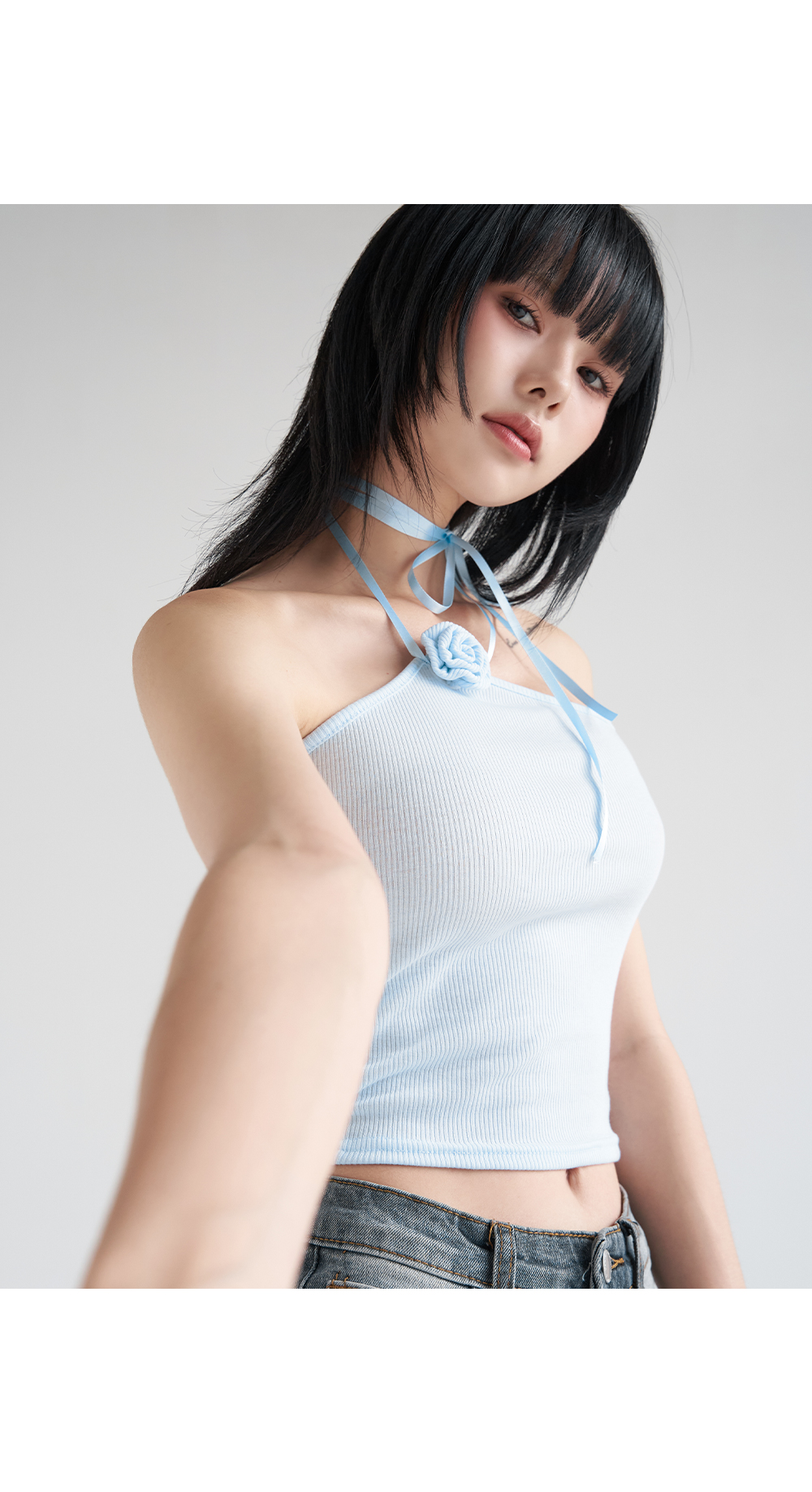 워터밤,휴가룩,바캉스룩,리본나시,크롭탑,페미닌룩,페미닌나시,코사지