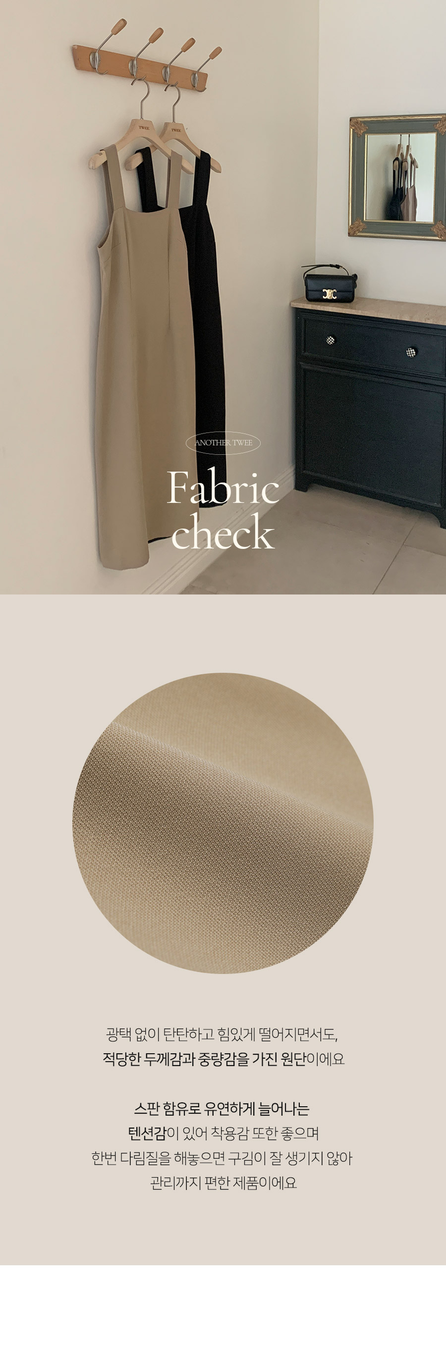 두께감 보통 │ 비침 없음 │ 신축성 없음 │ 안감 없음