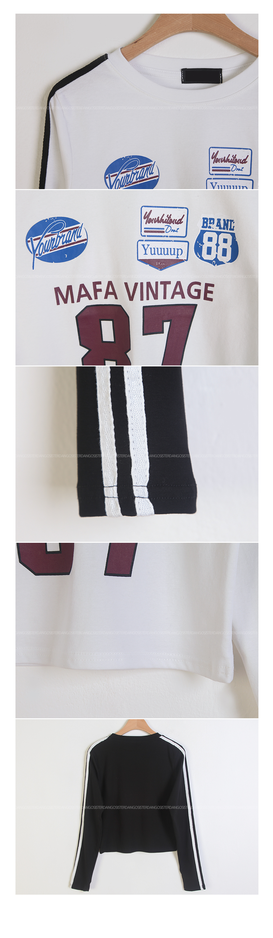 어깨에서 소매까지 2줄 배색라인이