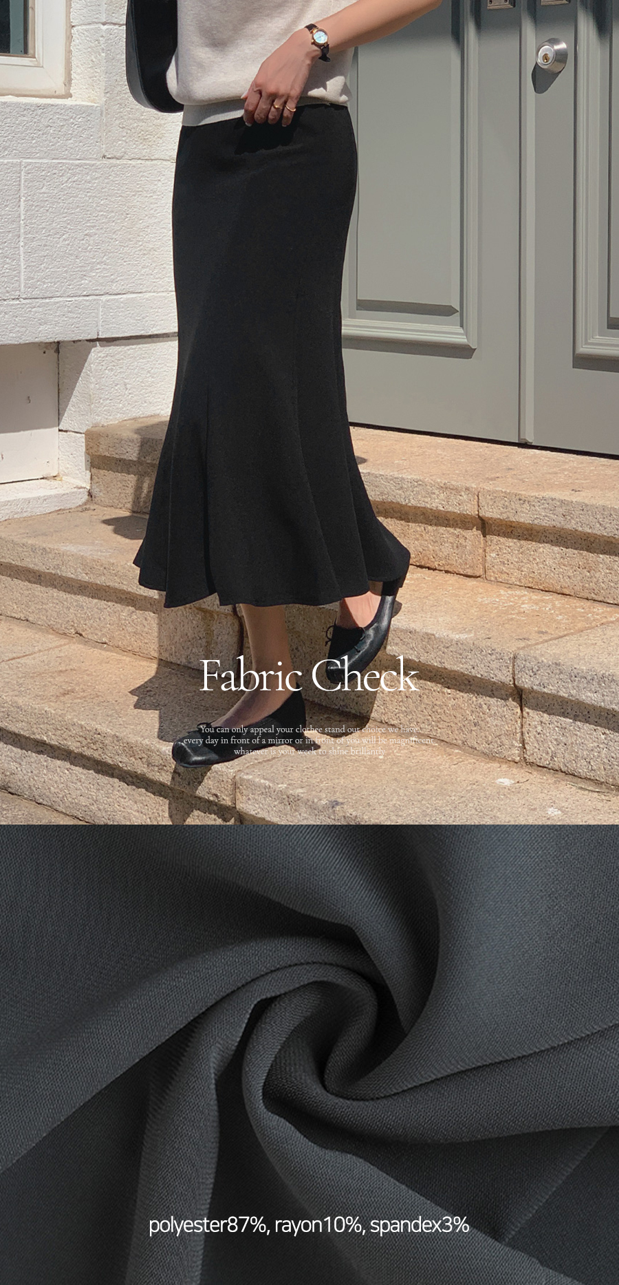FABRIC : 폴리(Polyester)87% 레이온(Rayon)10% 스판(Spandex)3%