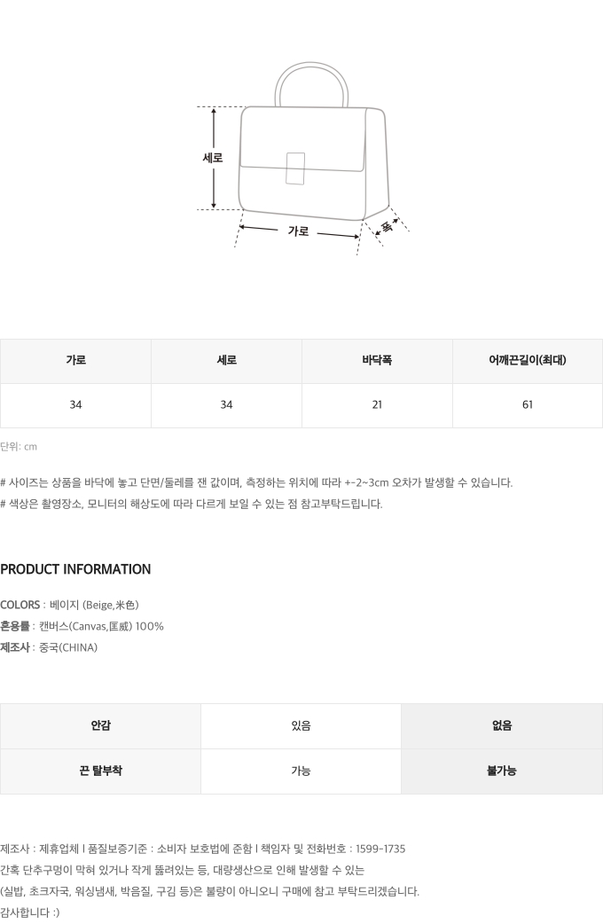 | 제품 측정 방법에 따라 1~3cm 오차가 발생할 수 있으며, 사이즈는 단면으로 측정됩니다 | ||||