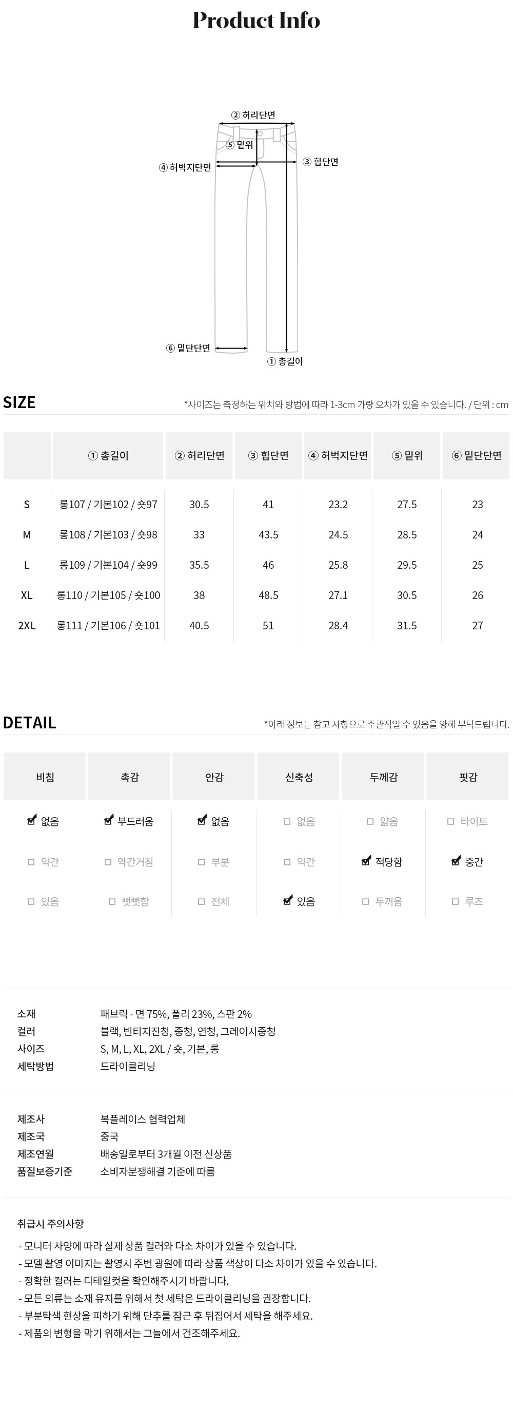 소재 : 면 75%, 폴리에스터 23%, 스판덱스 2%