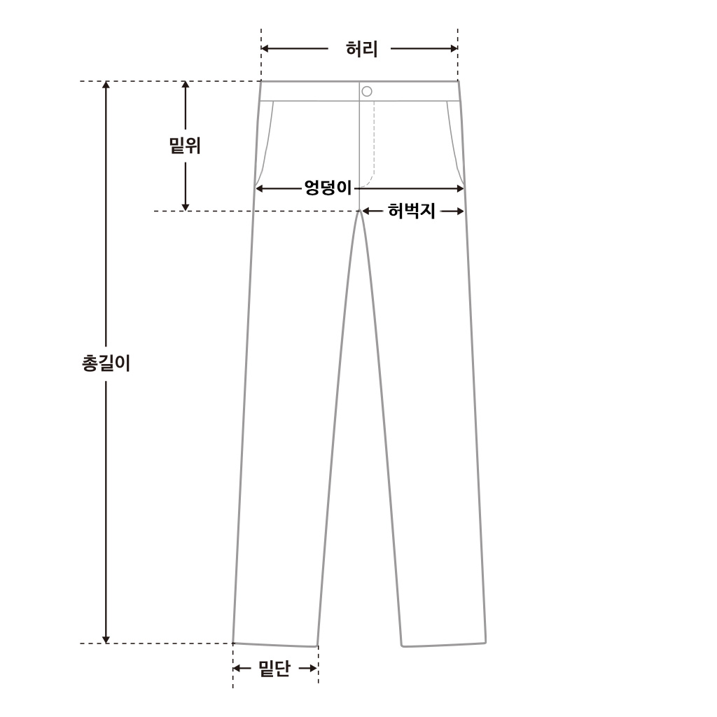 # 허리사이즈는 밑위를 올려서 ㅡ 자로 만든 후 사이즈 확인해주세요.