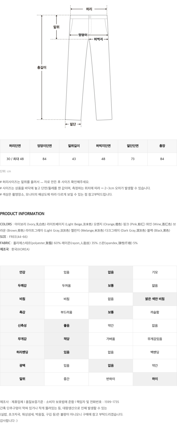 허리밴딩 | 있음 | 없음 | 백밴딩 |