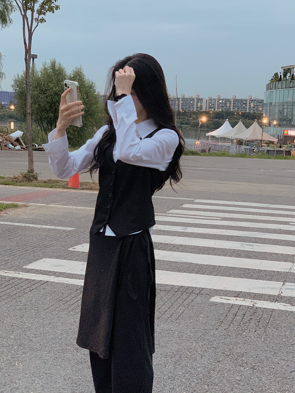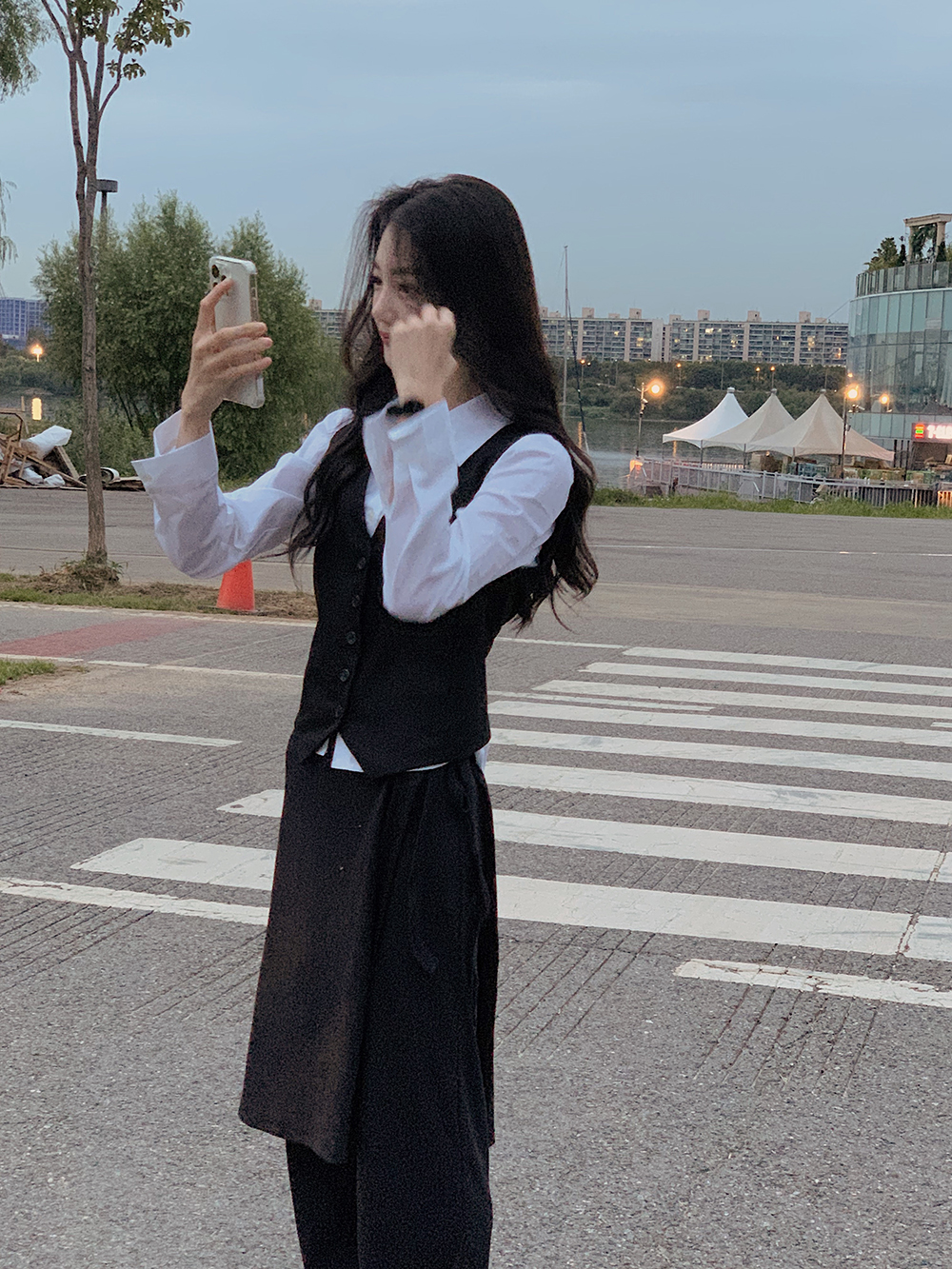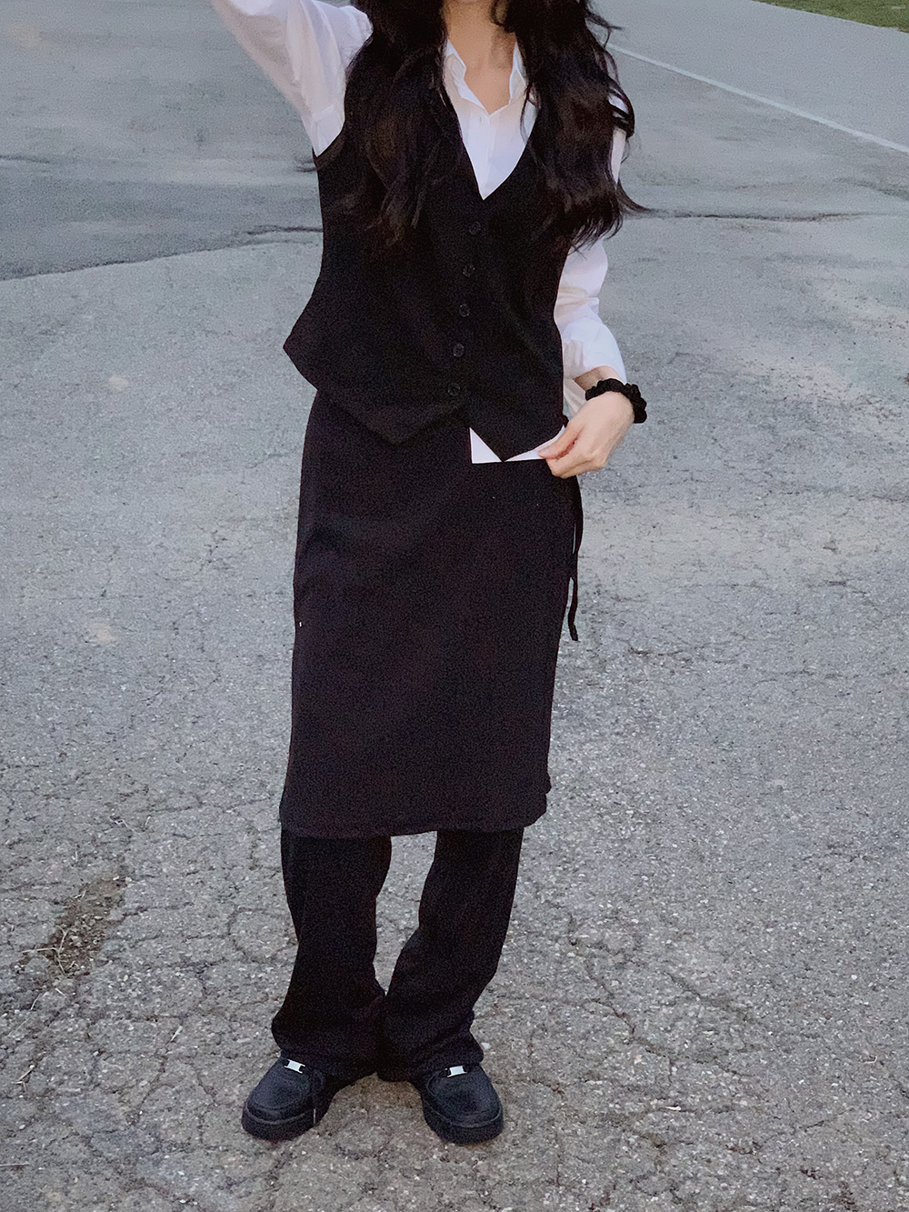 밑단면(Hem)-21.5cm, 치마기장(skirt) - 105cm