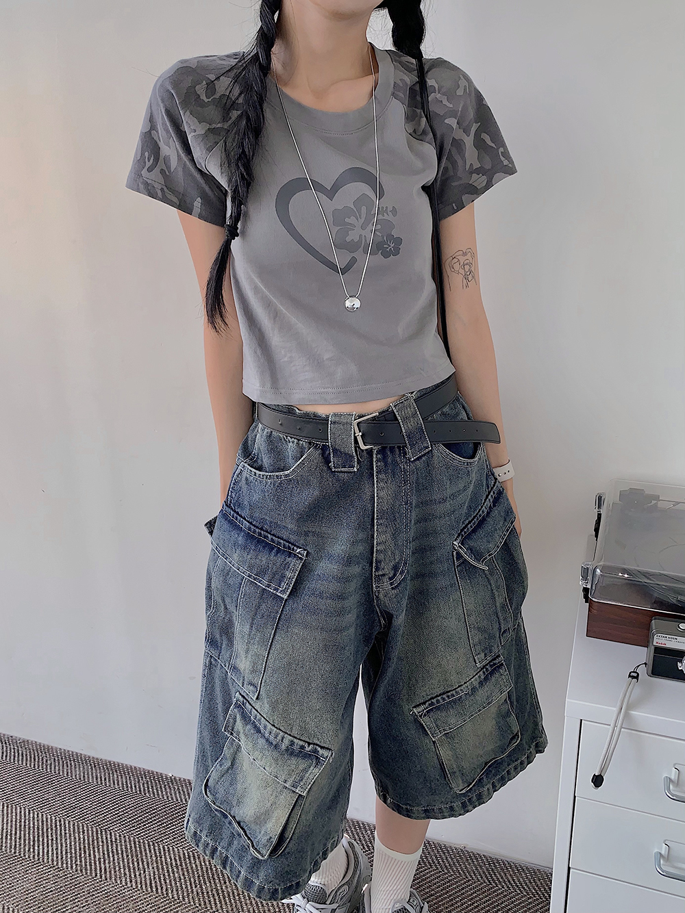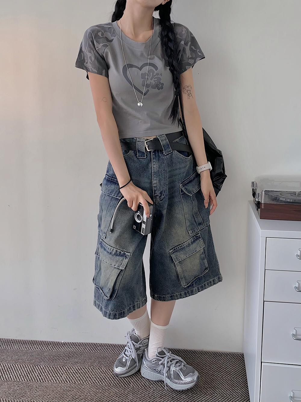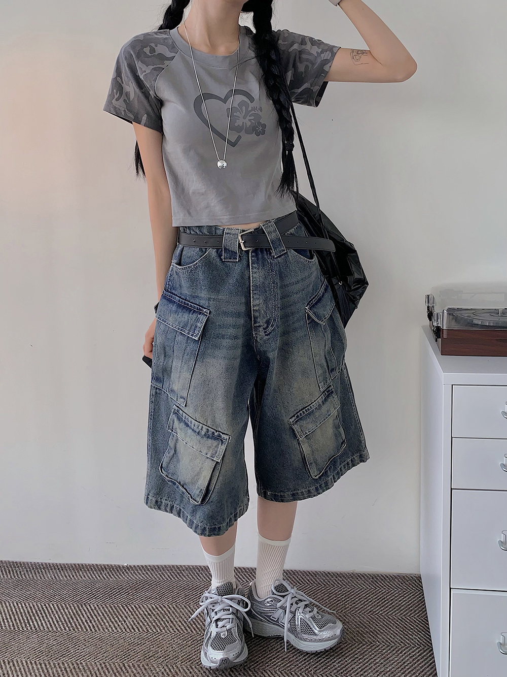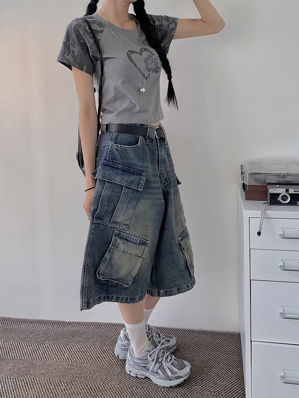 밑단면(Hem)-33.5cm, 총길이(Outseam)-64cm