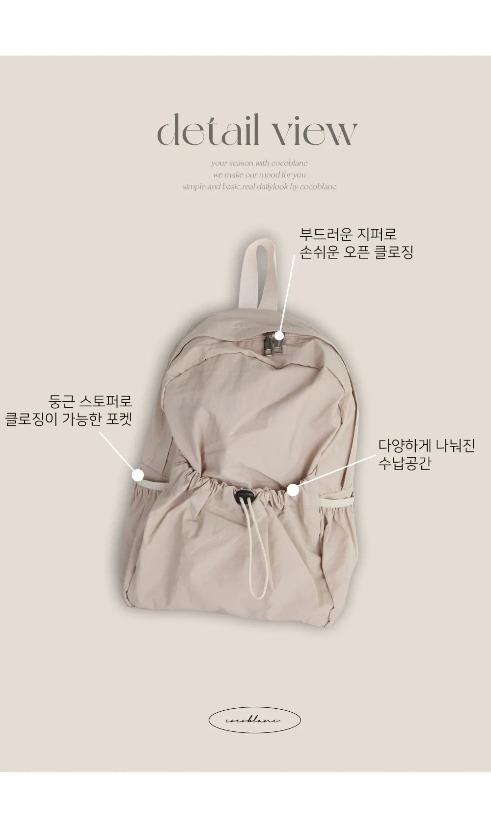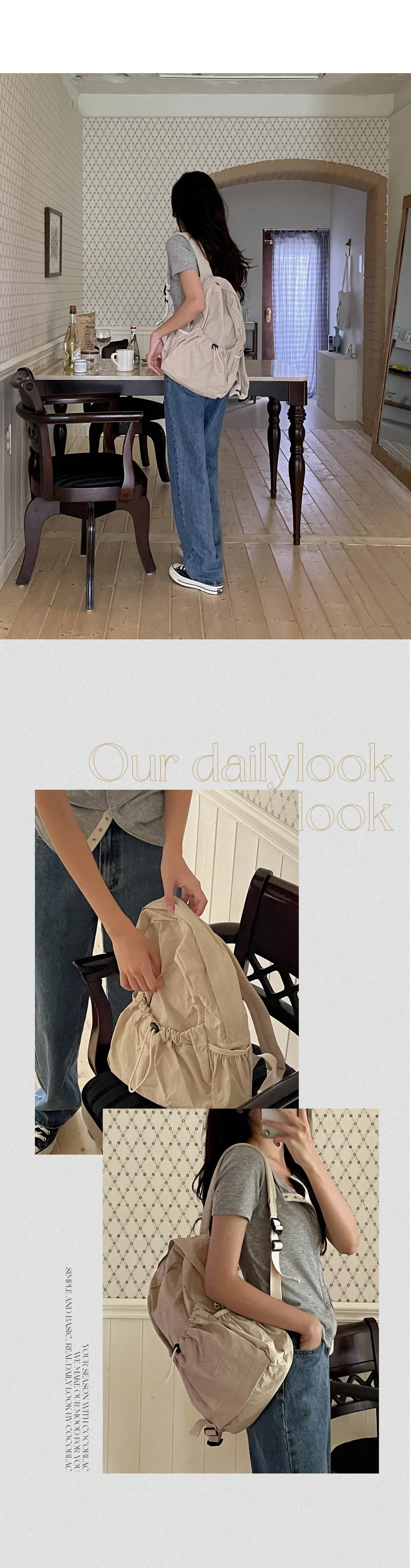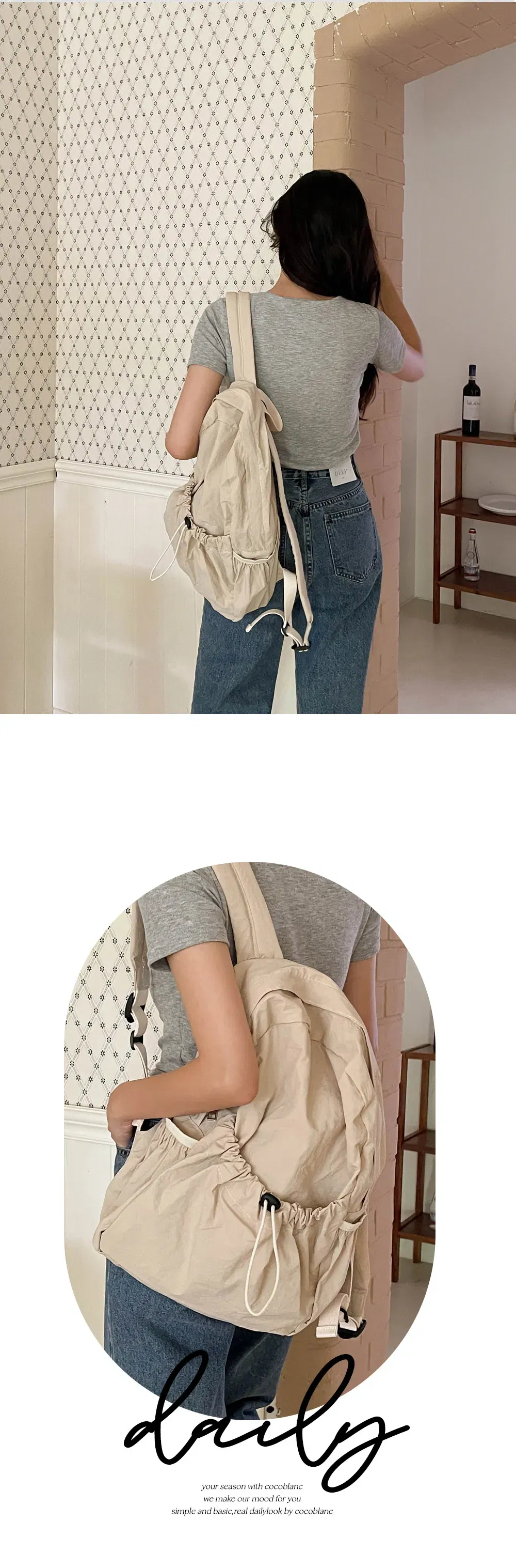 다양한 코디에 이질감 없이 매치할 수 있는 데일리 백팩으로