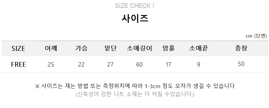 | 사이즈 | 어깨너비 | 가슴 | 암홀 | 팔길이 | 총길이 |