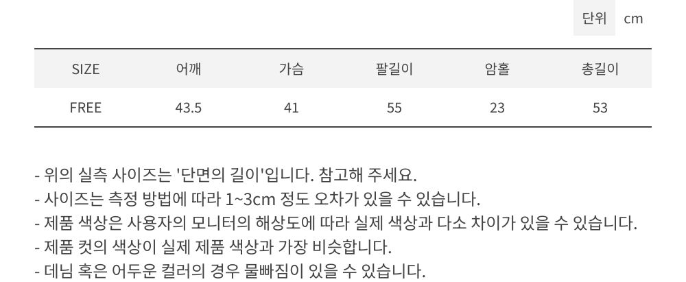 | 사이즈 | 어깨너비 | 가슴 | 팔길이 | 총길이 |