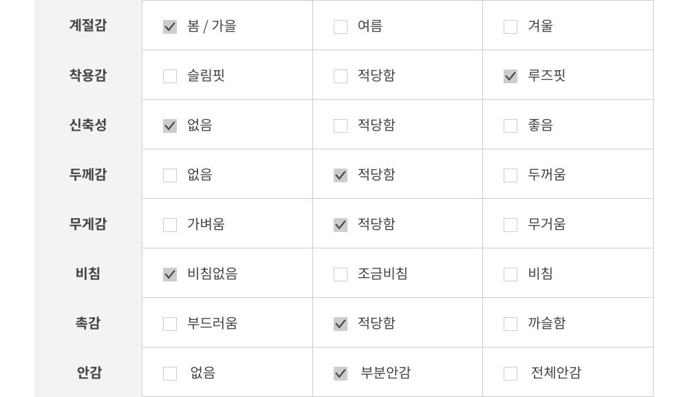 소재 : 폴리에스터 95%, 스판덱스 5%