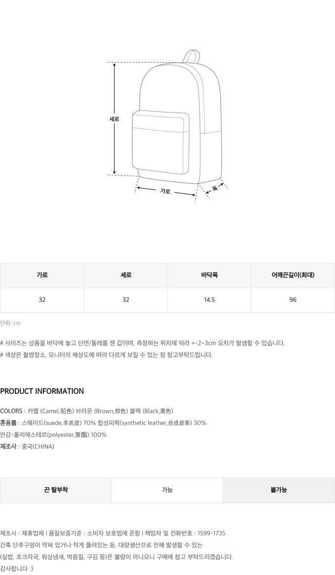 • COLORS : 카멜 (Camel,驼色) 브라운 (Brown,棕色) 블랙 (Black,黑色)
