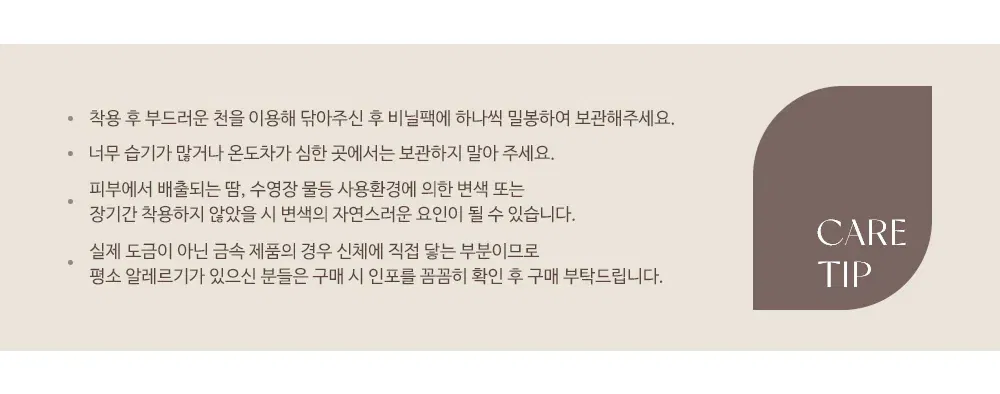 · 모든 의류의 첫 세탁은 드라이크리닝을 추천하며, 세탁 후 착용 부탁 드립니다.