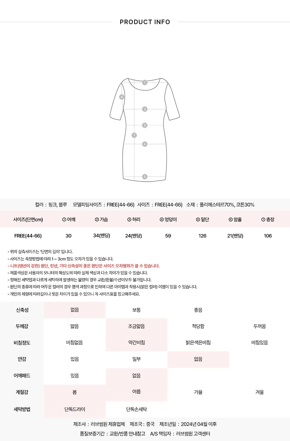 소재 : 폴리에스터 70%, 스판덱스 30%