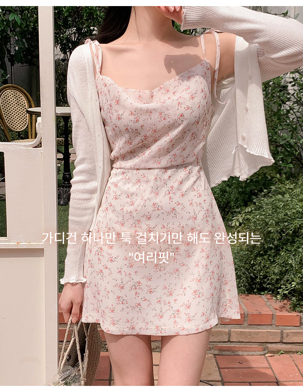 ・플리엣 쉬폰 스트랩 미니원피스(아이보리)