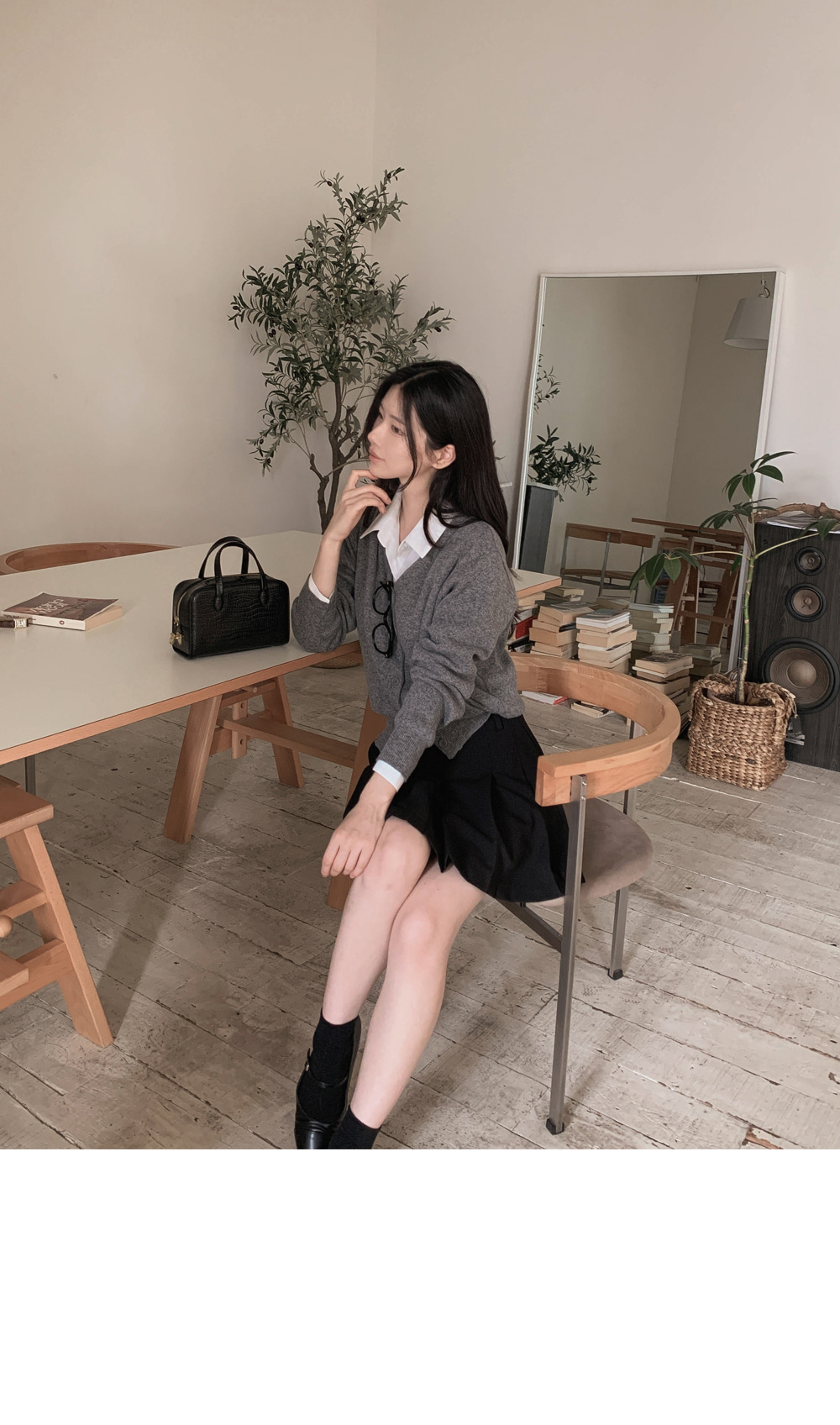 가디건의 디테일이 단정하면서도