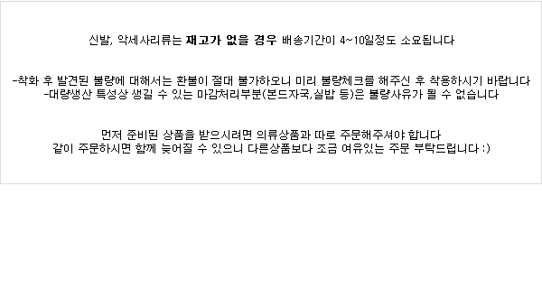 | 제품 측정 방법에 따라 1~3cm 오차가 발생할 수 있으며, 사이즈는 단면으로 측정됩니다 | |