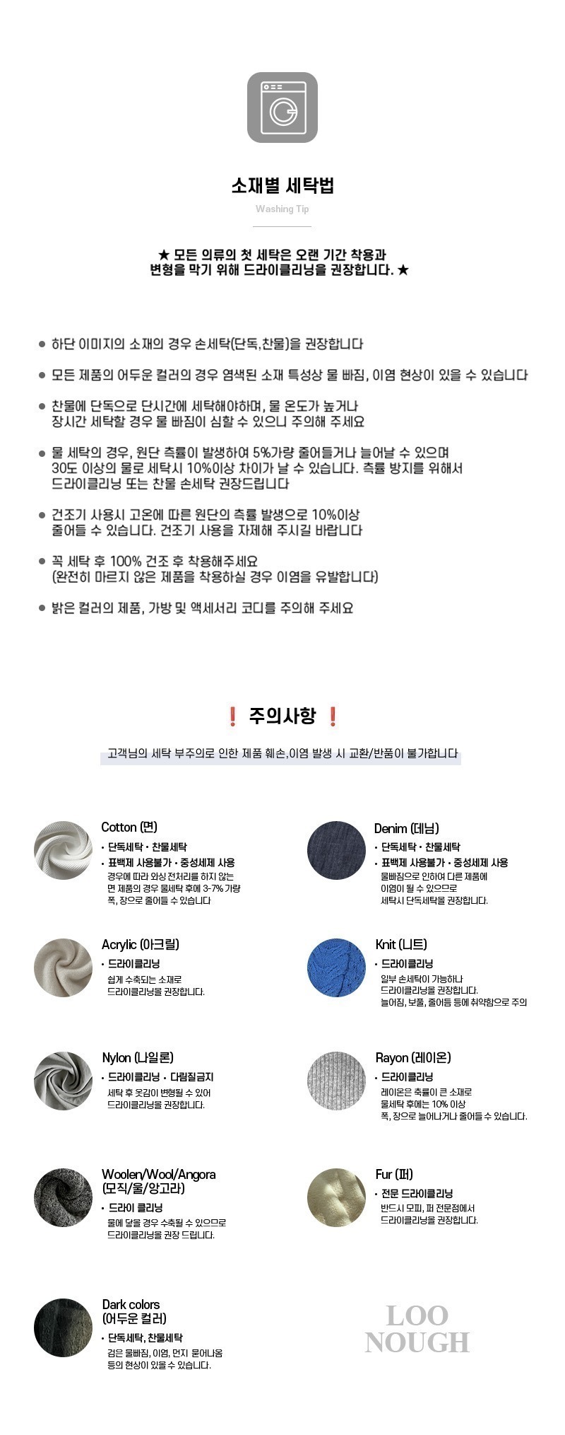 · 모든 의류의 첫 세탁은 드라이크리닝을 추천하며, 세탁 후 착용 부탁 드립니다.