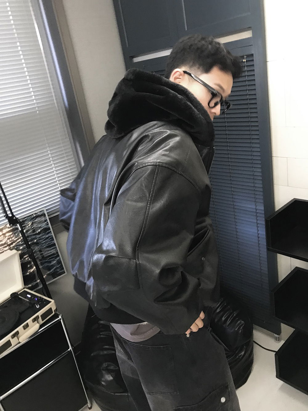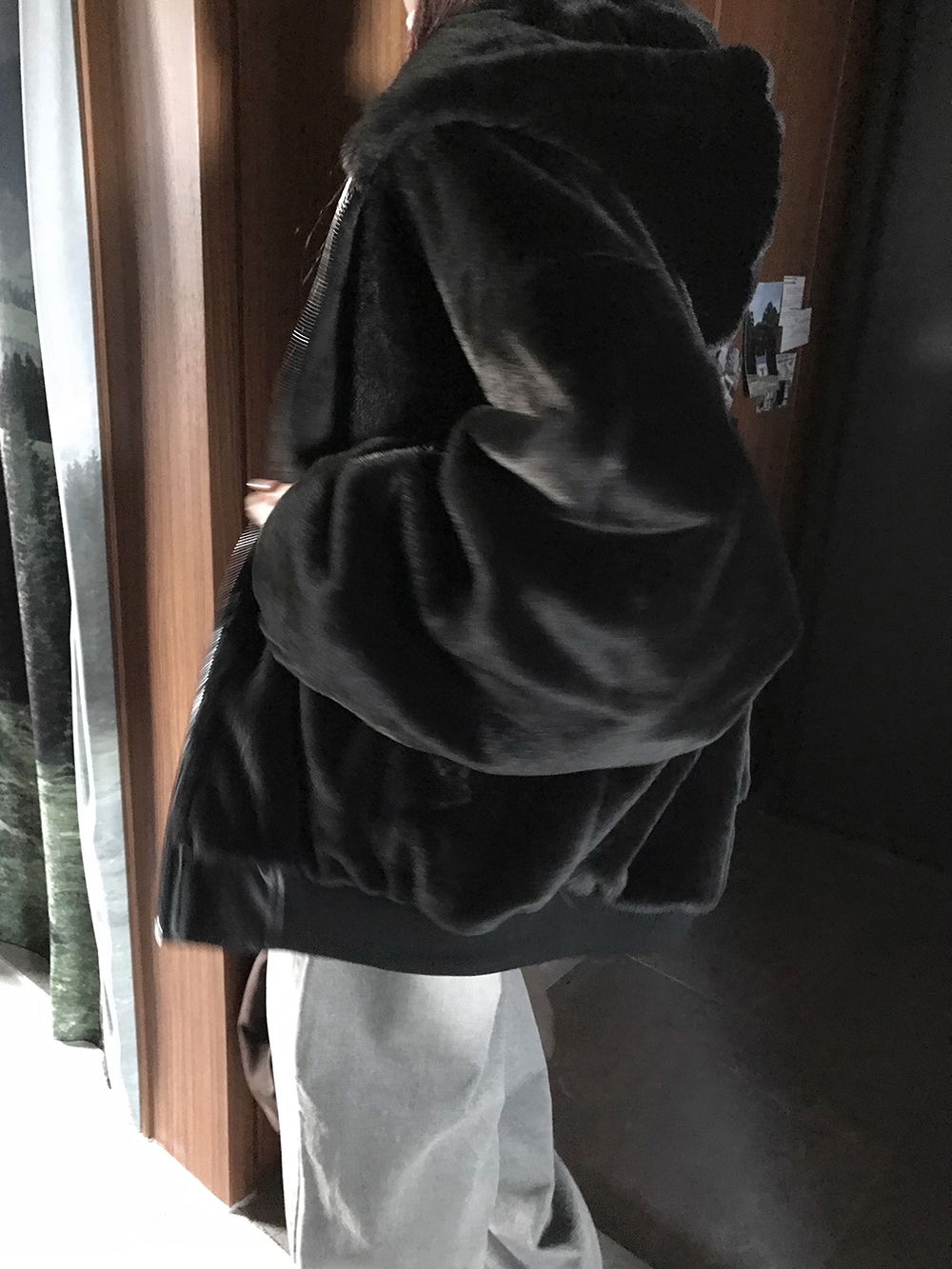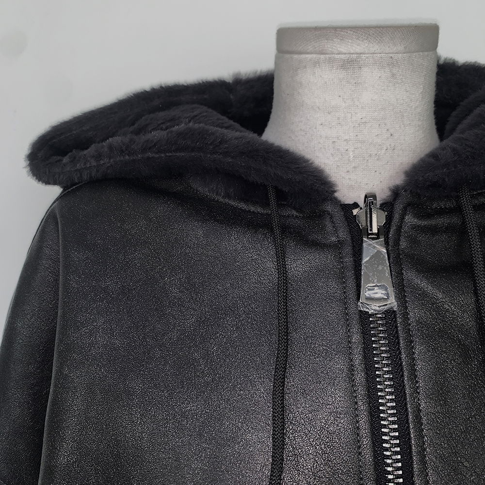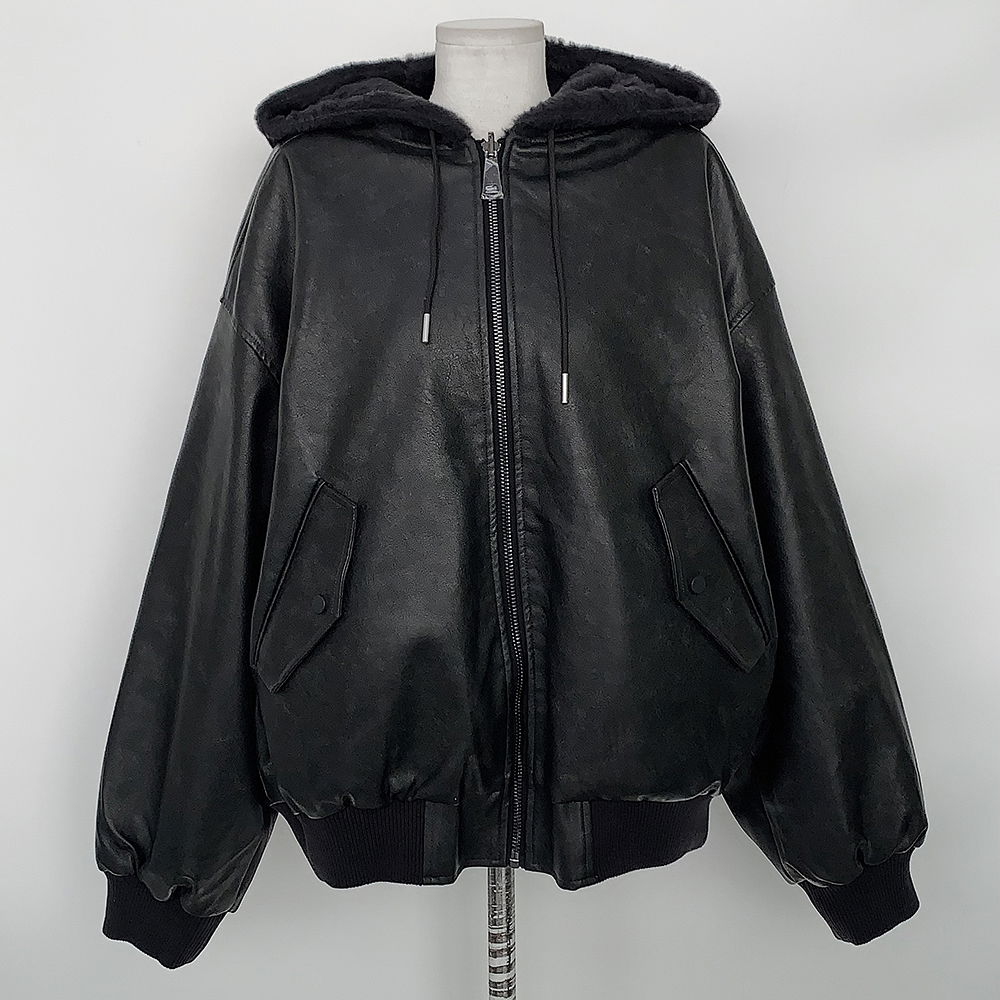레더와 퍼에 넉넉한 후드가 합쳐져