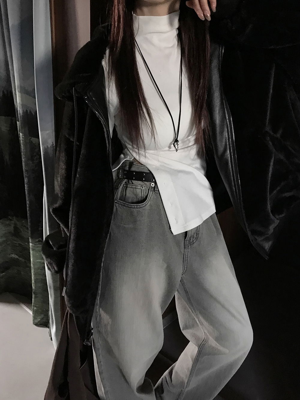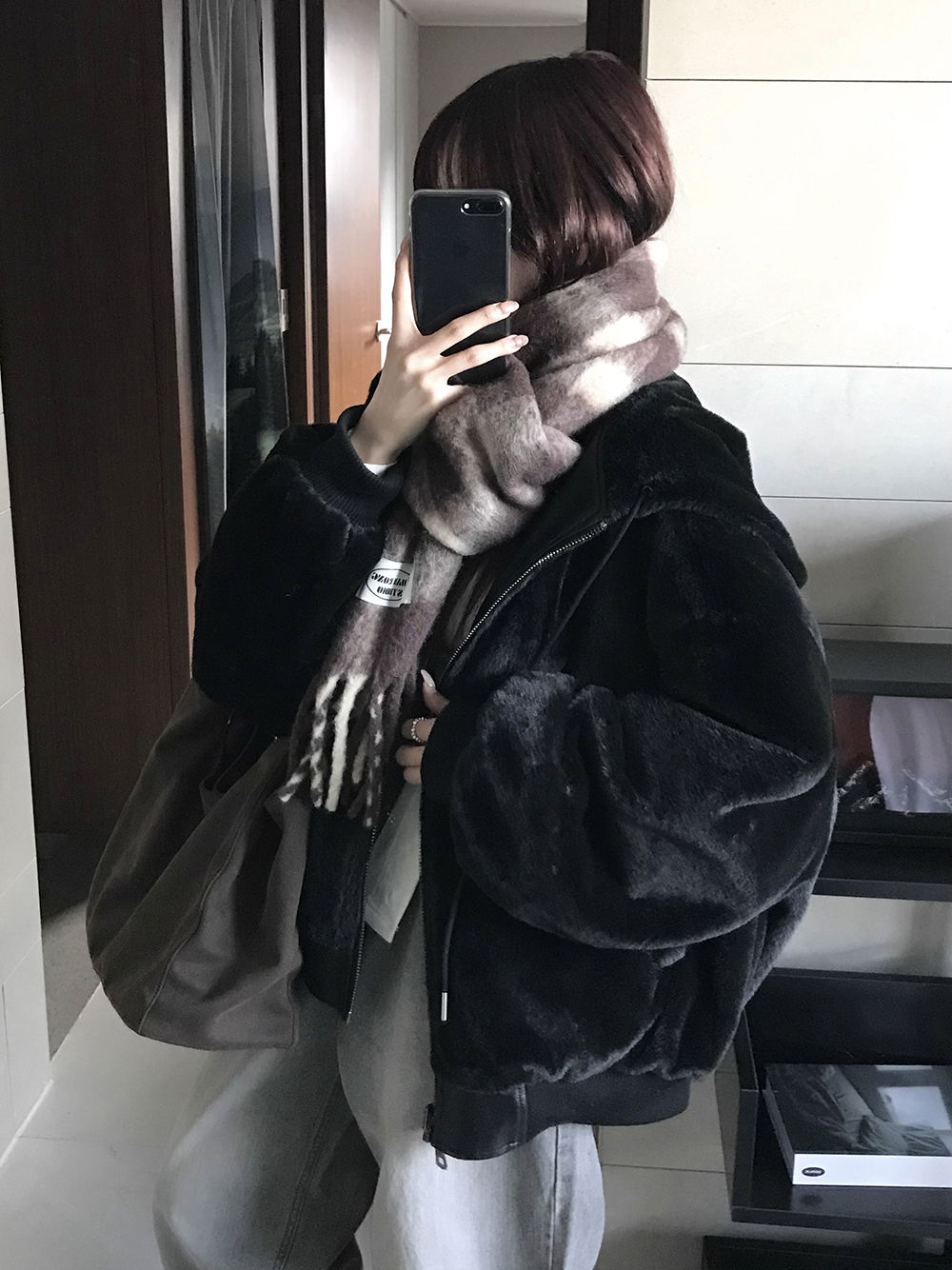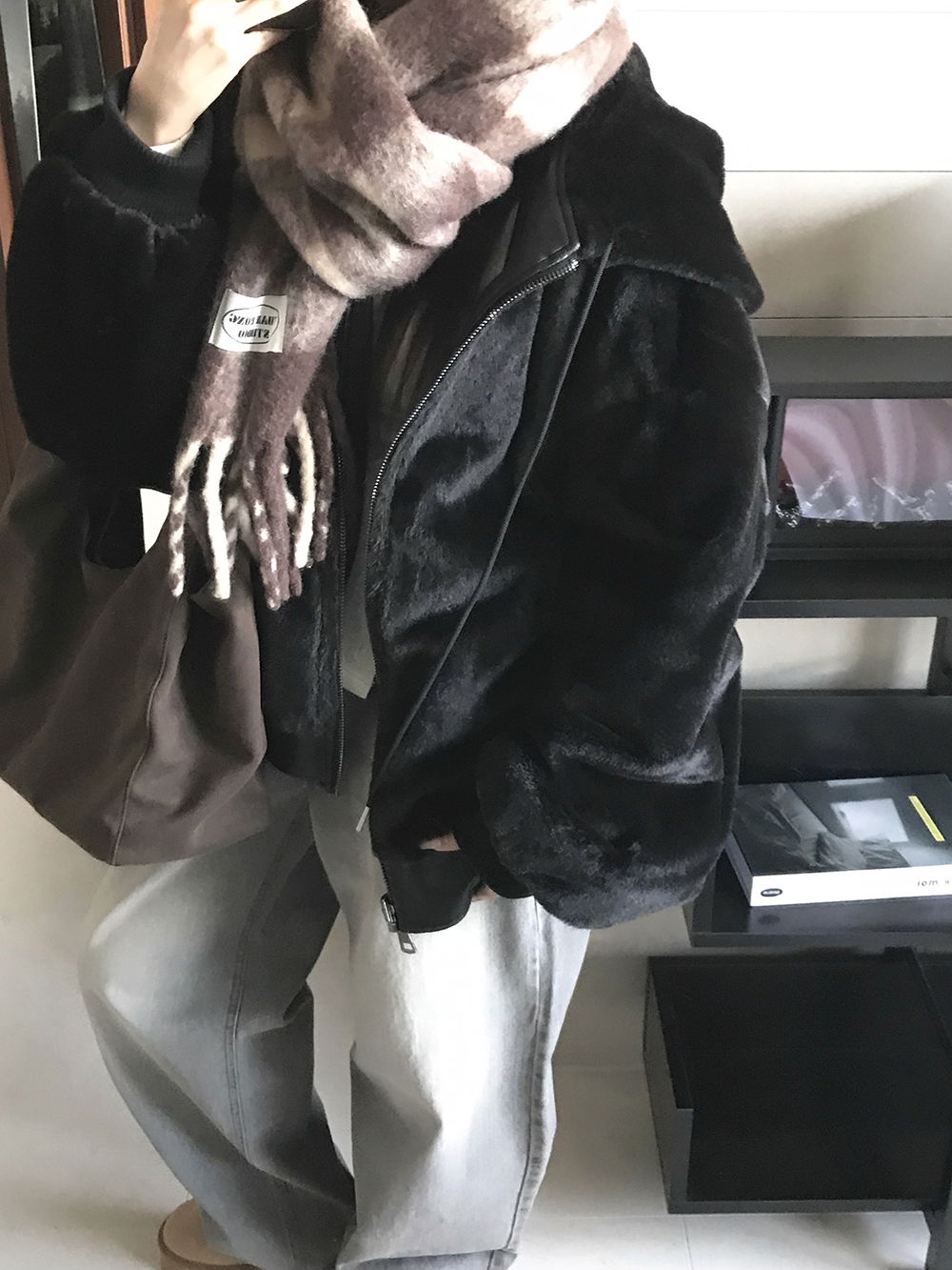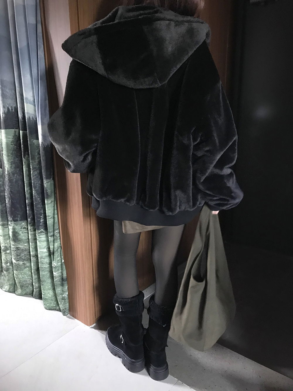 레더와 퍼에 넉넉한 후드가 합쳐져