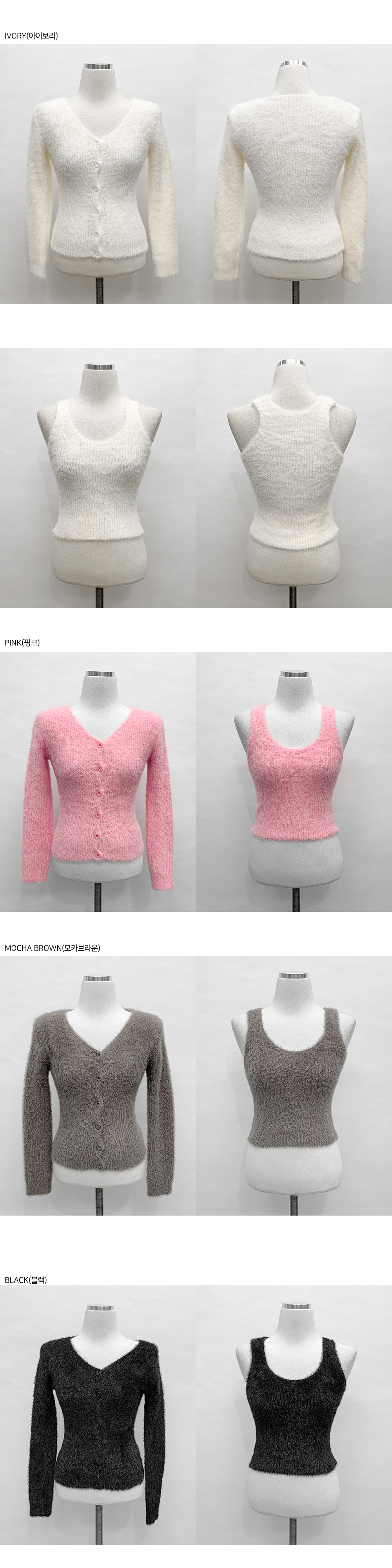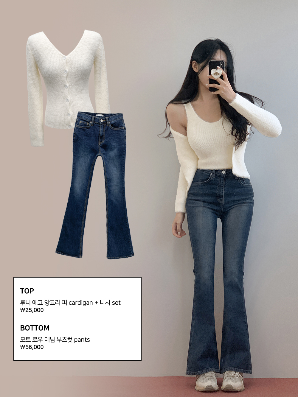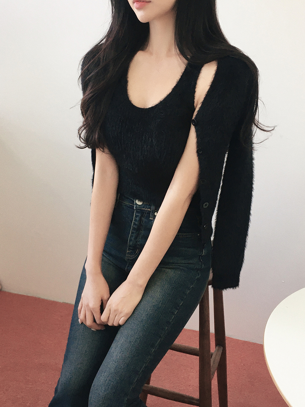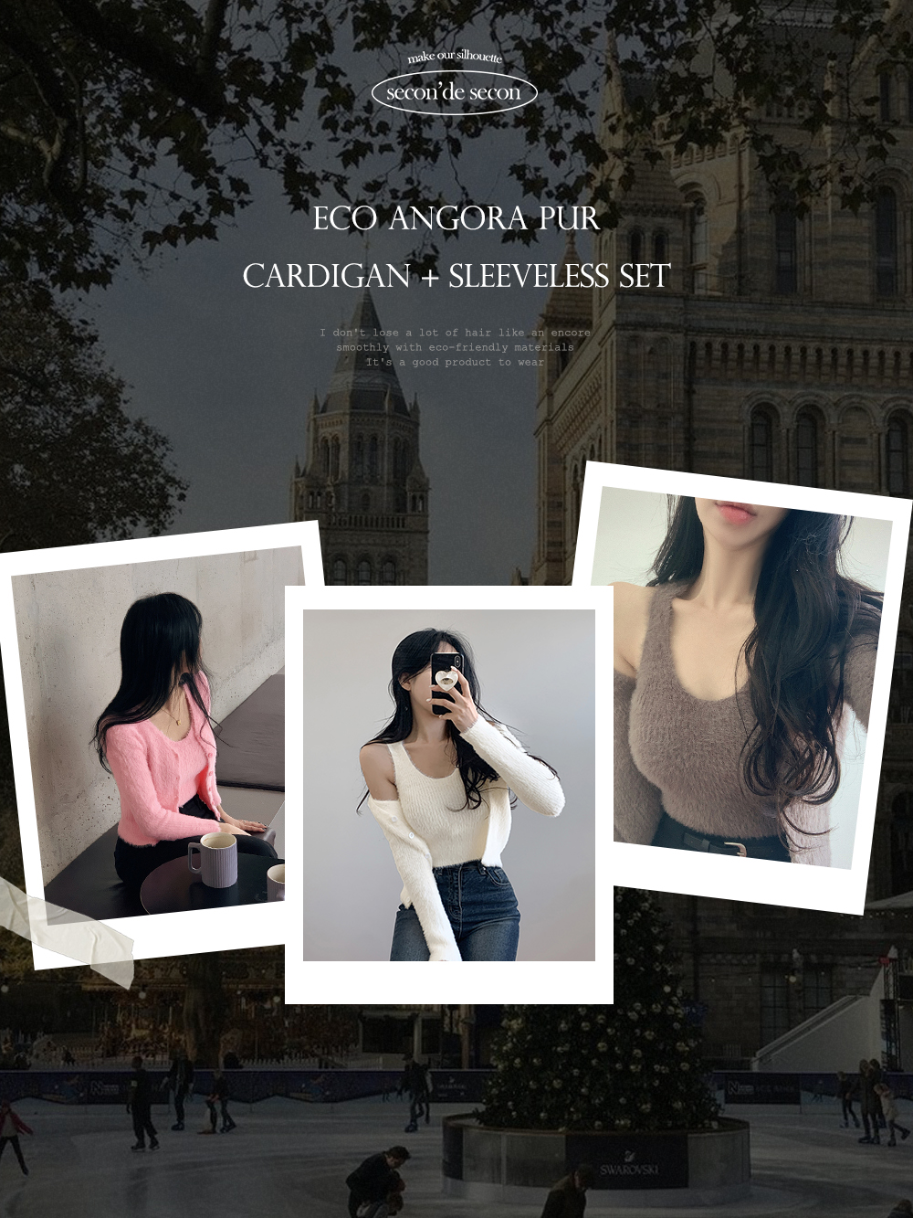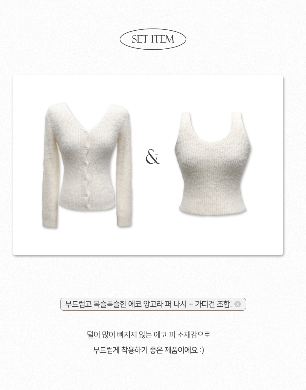 부드럽고 복슬복슬한 에코 앙고라 퍼 나시 + 가디건 조합!