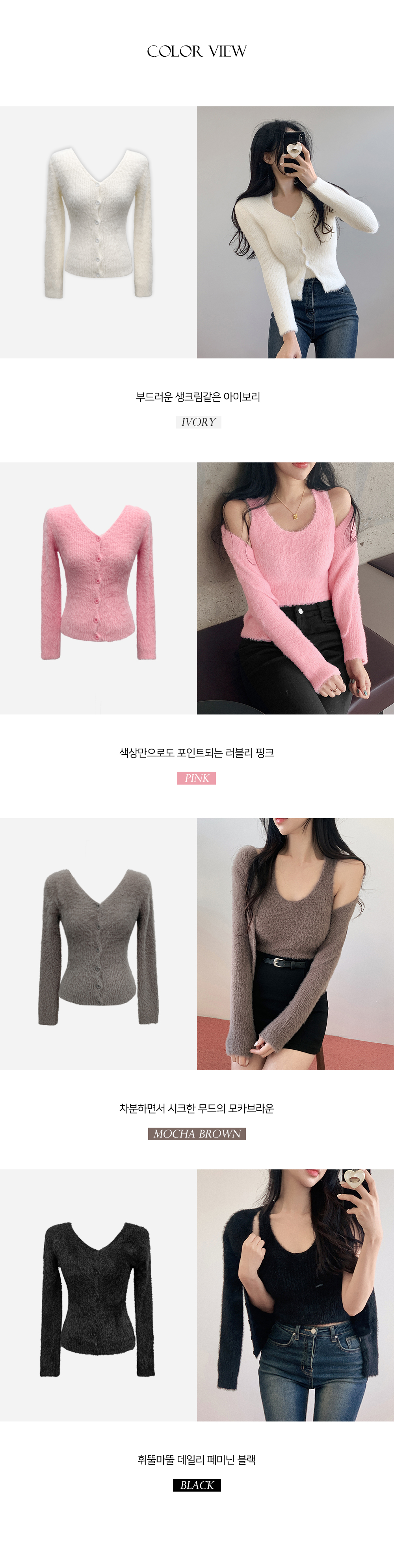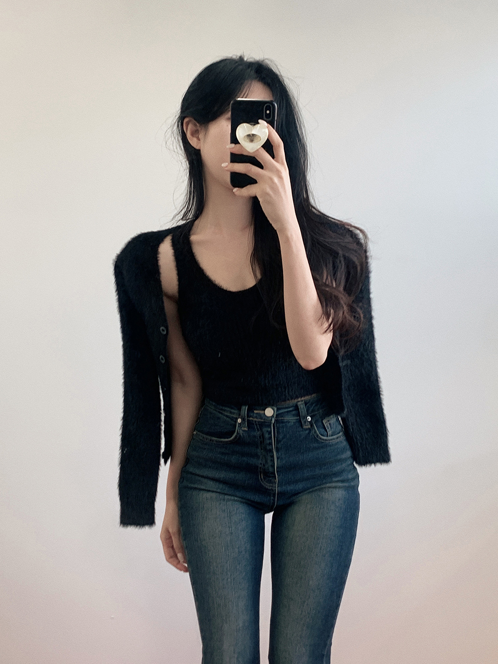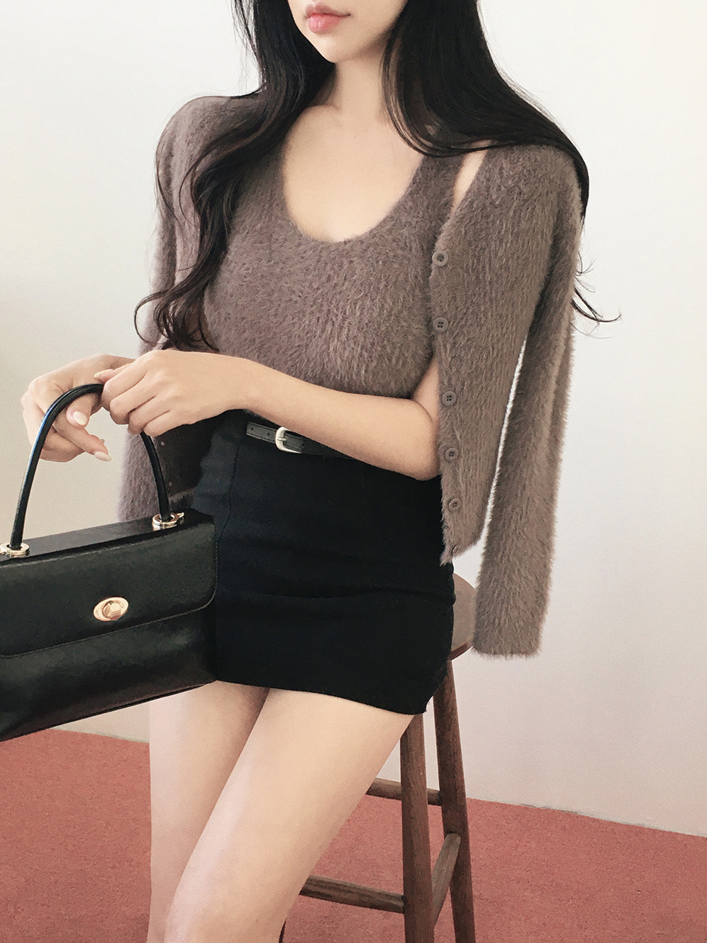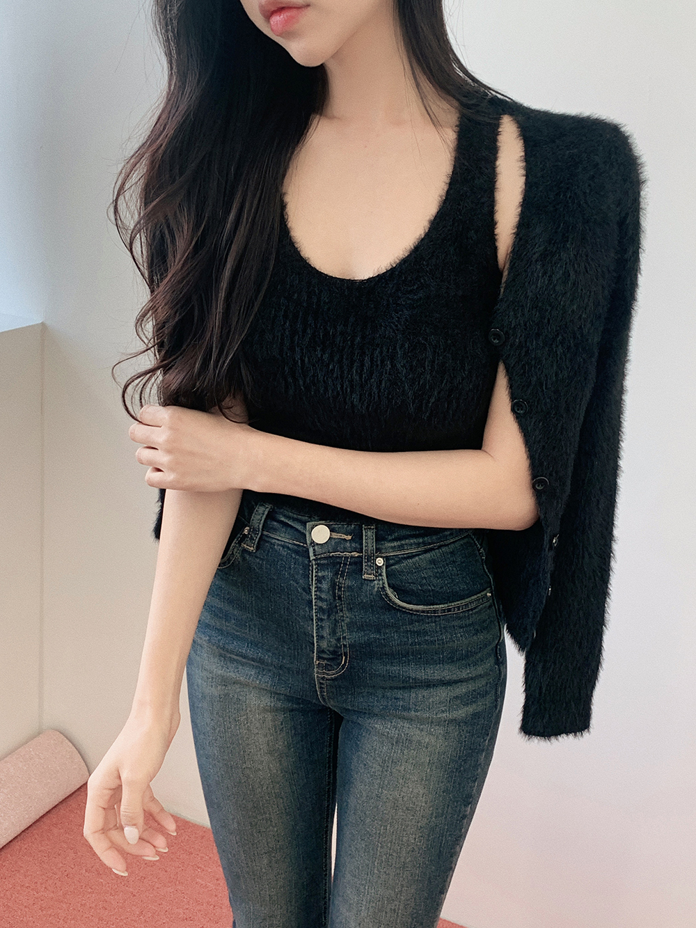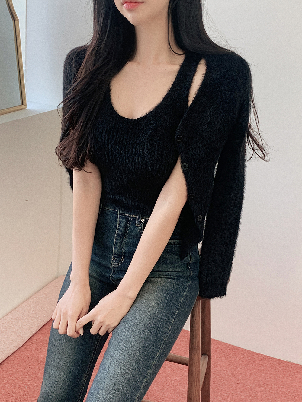 부드럽고 복슬복슬한 에코 앙고라 퍼 나시 + 가디건 조합!