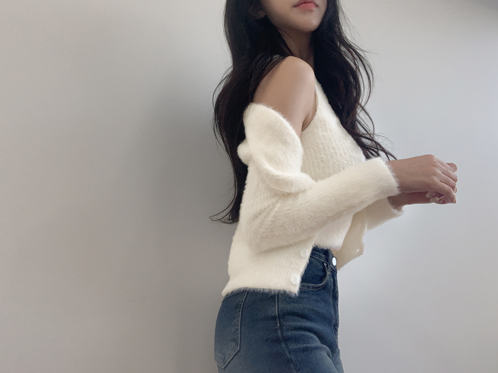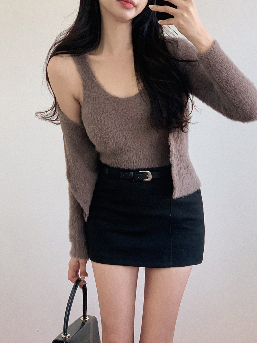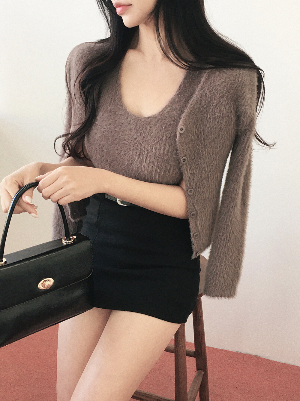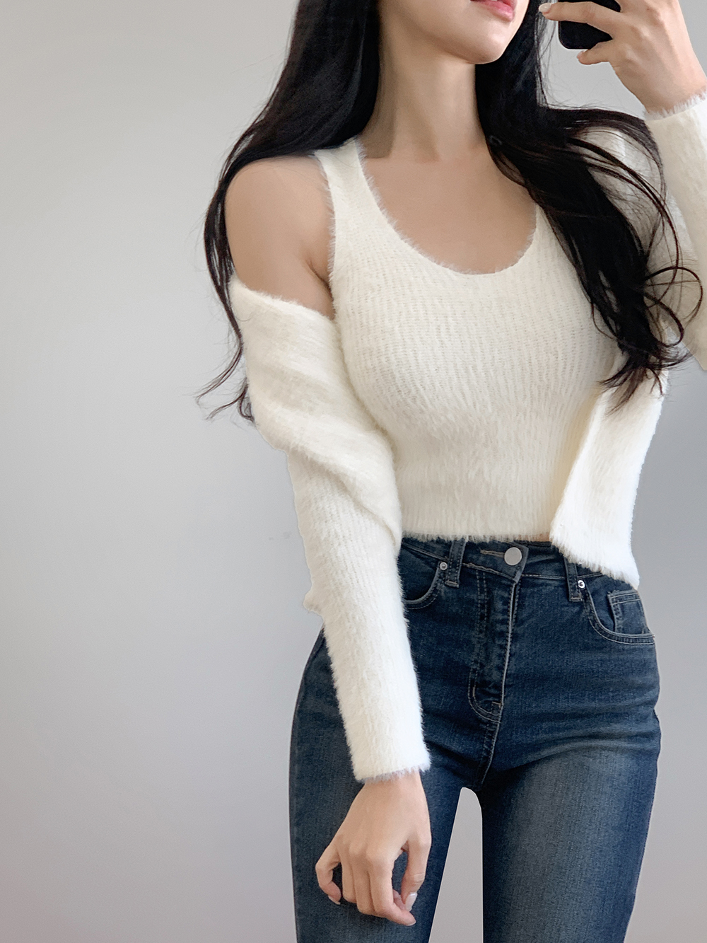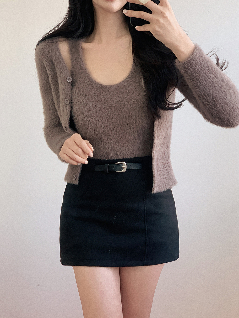 부드럽고 복슬복슬한 에코 앙고라 퍼 나시 + 가디건 조합!