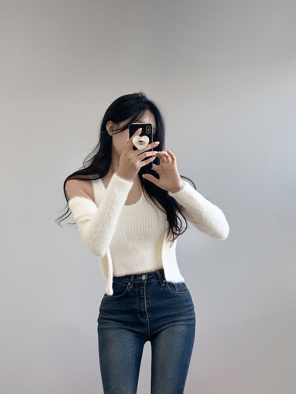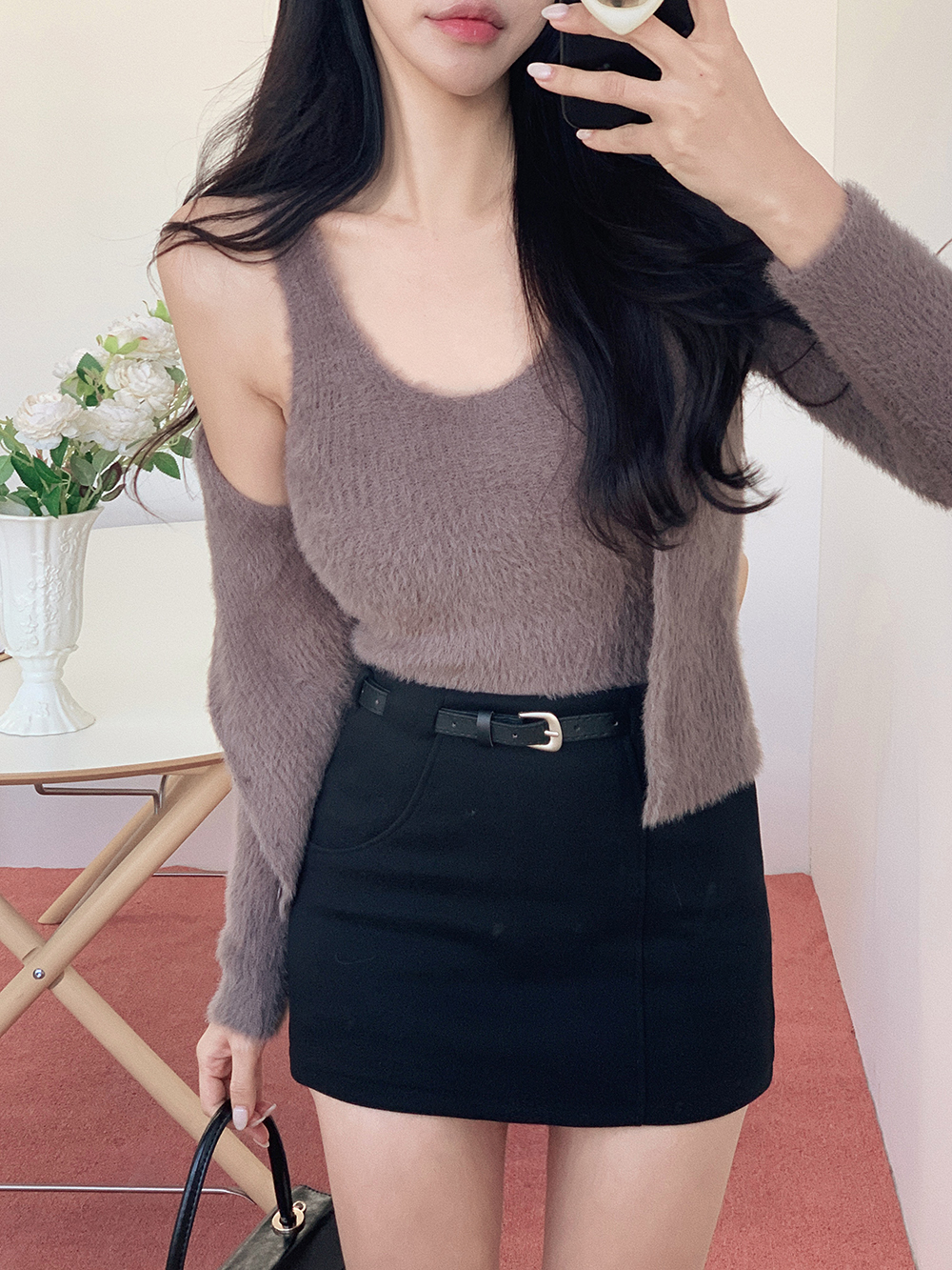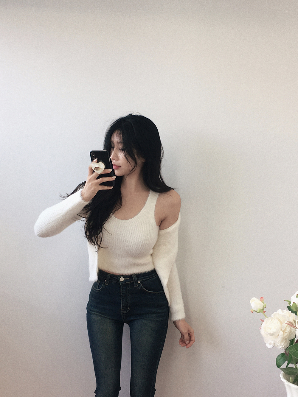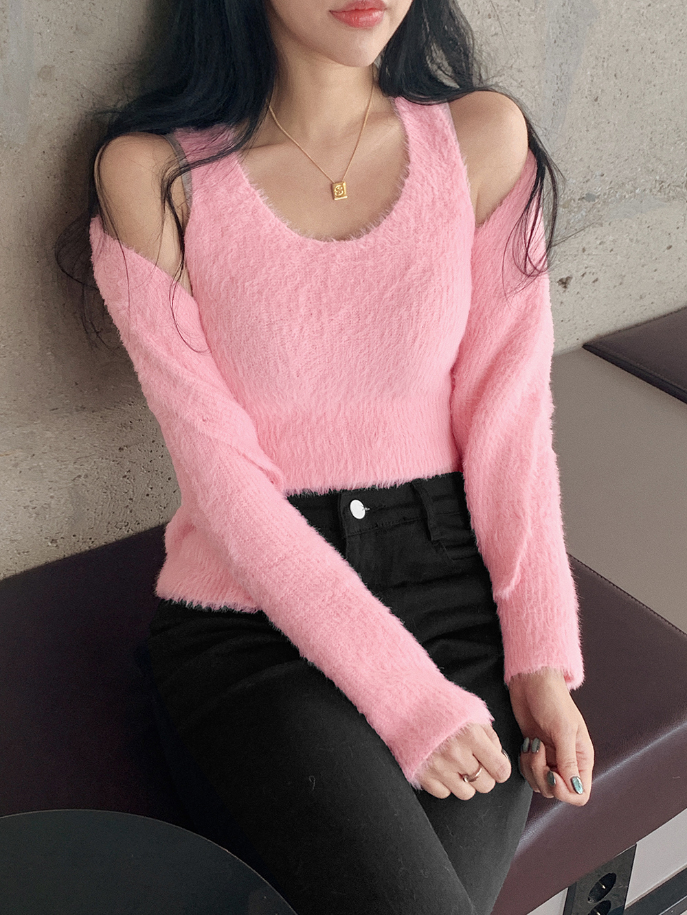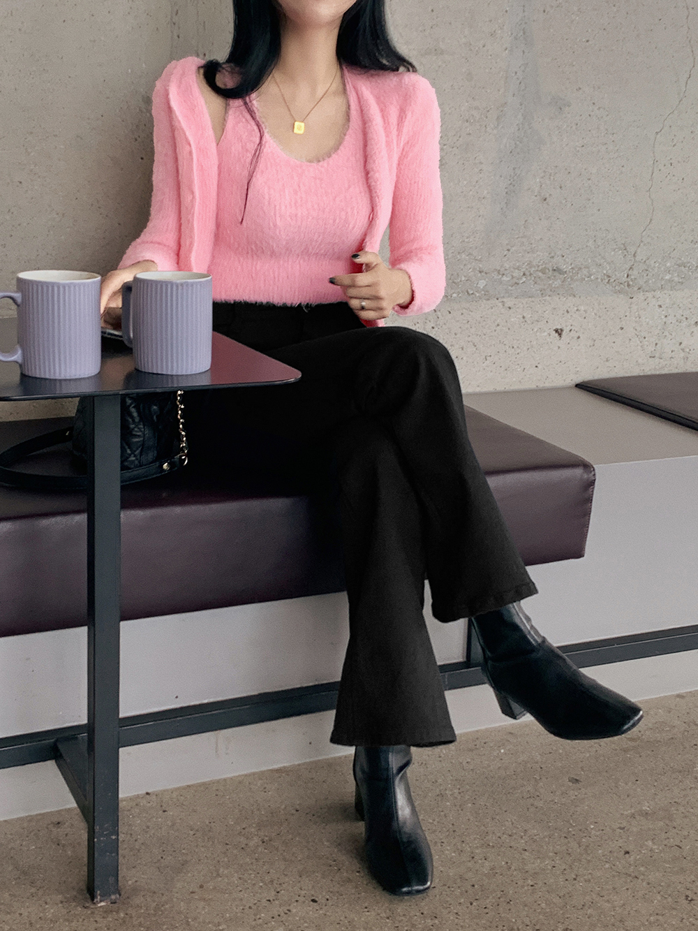 부드럽고 복슬복슬한 에코 앙고라 퍼 나시 + 가디건 조합!
