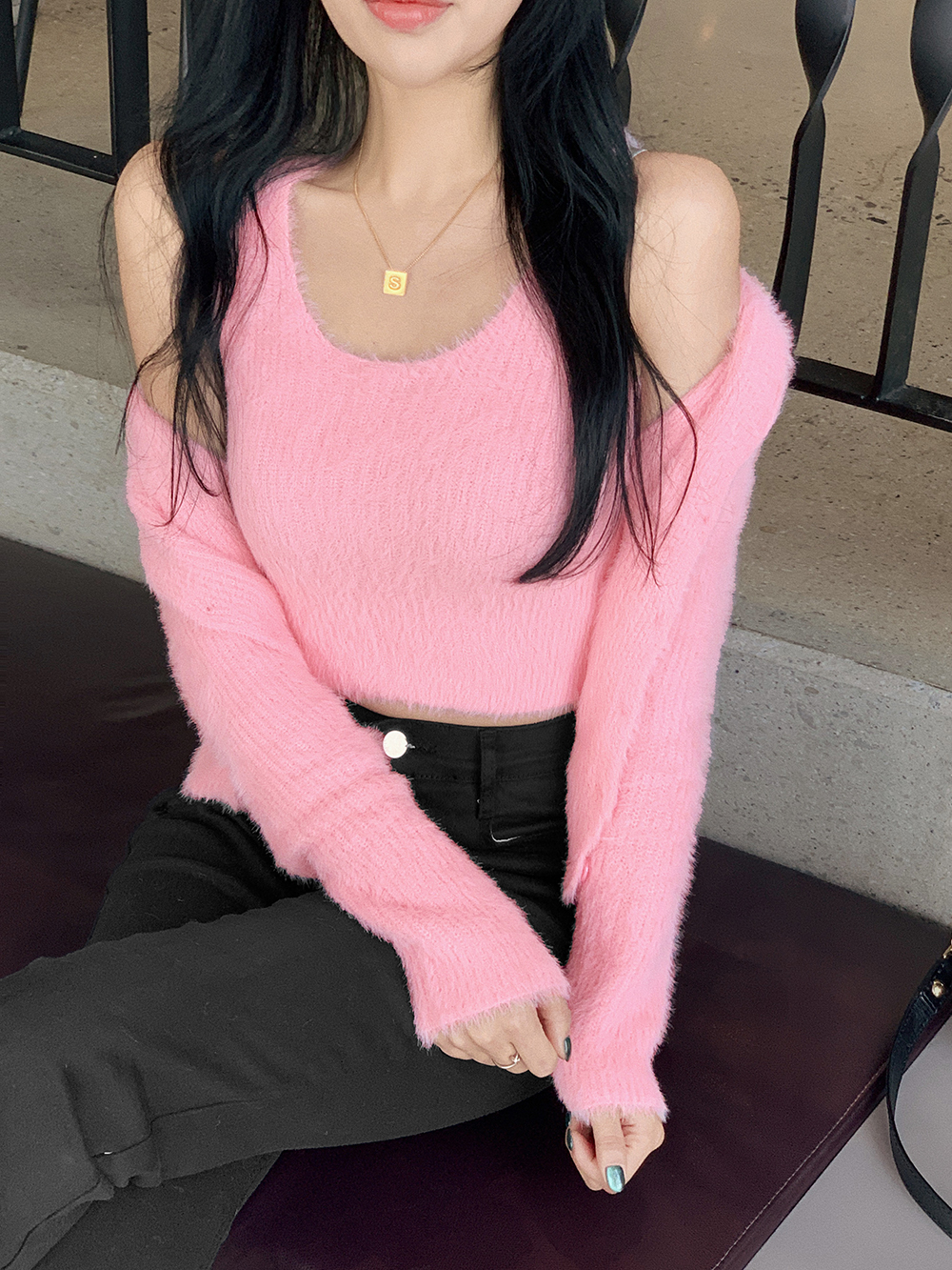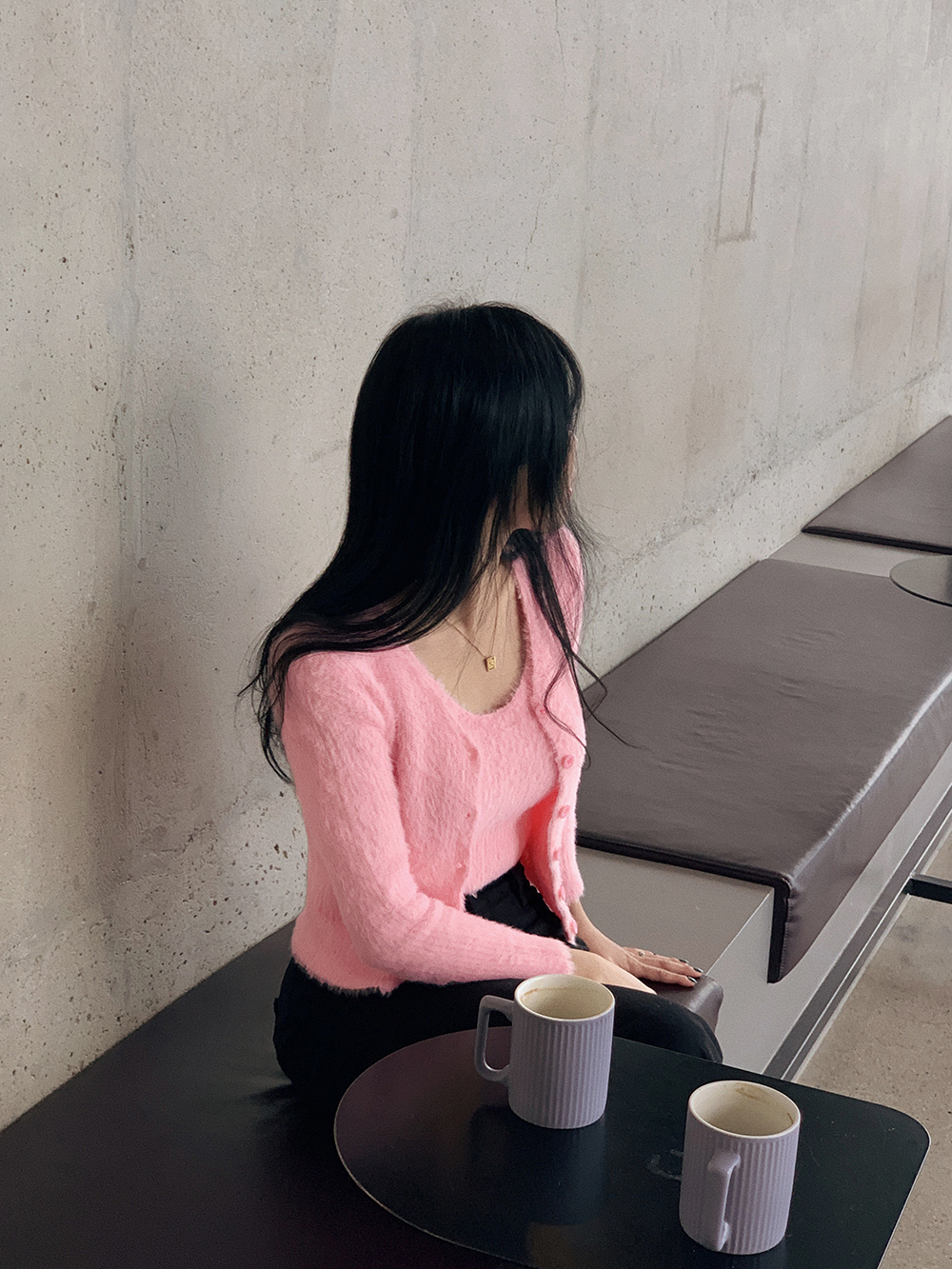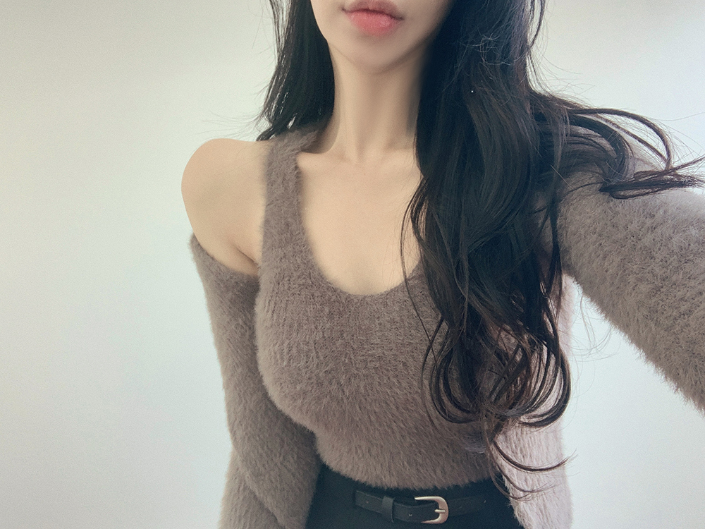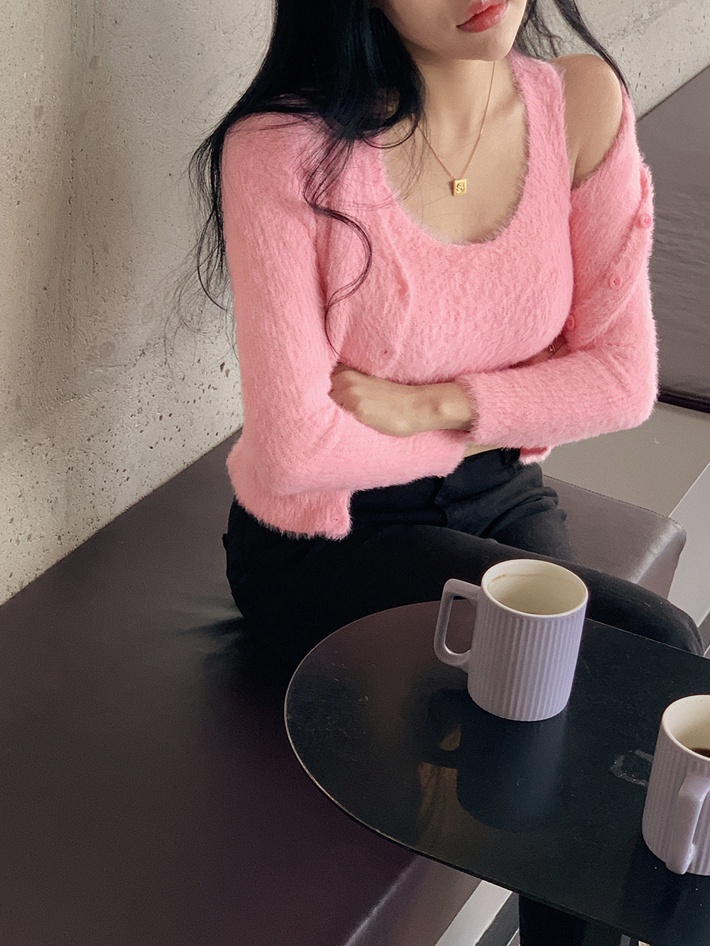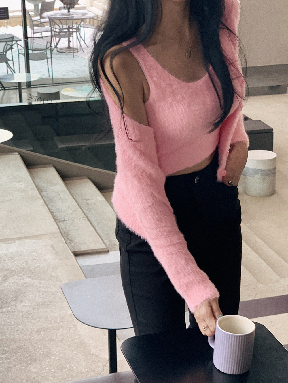 부드럽고 복슬복슬한 에코 앙고라 퍼 나시 + 가디건 조합!