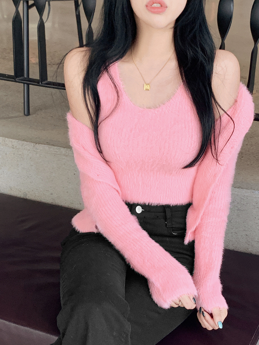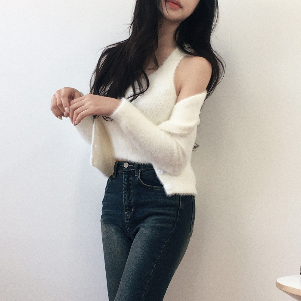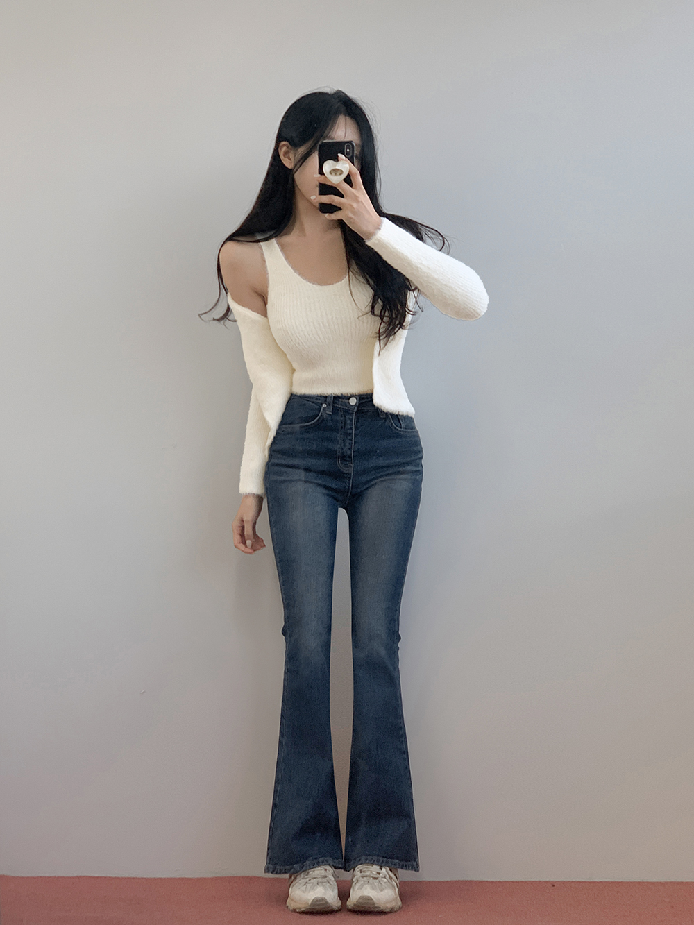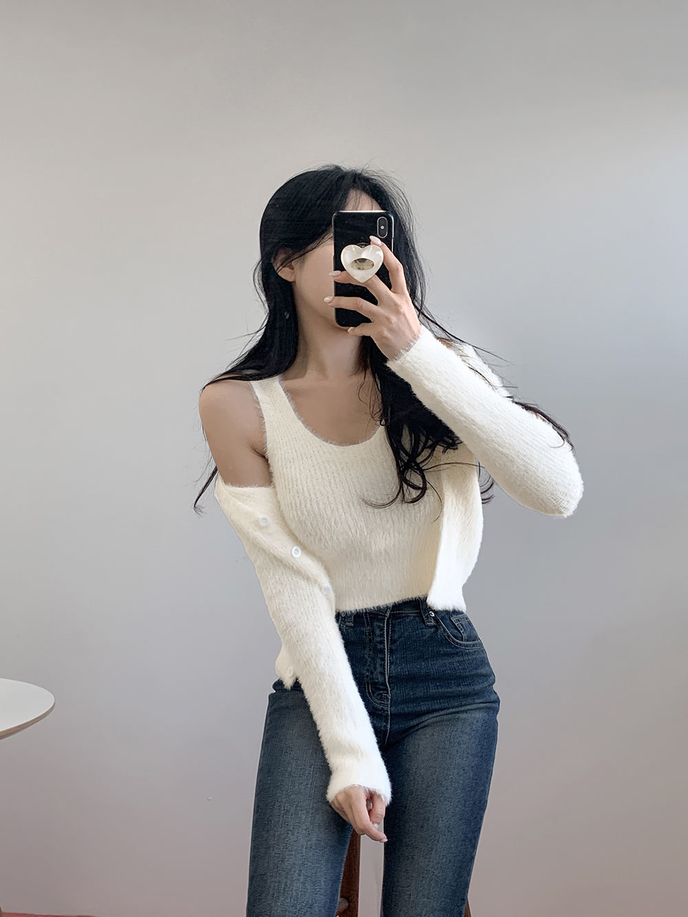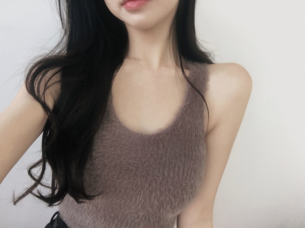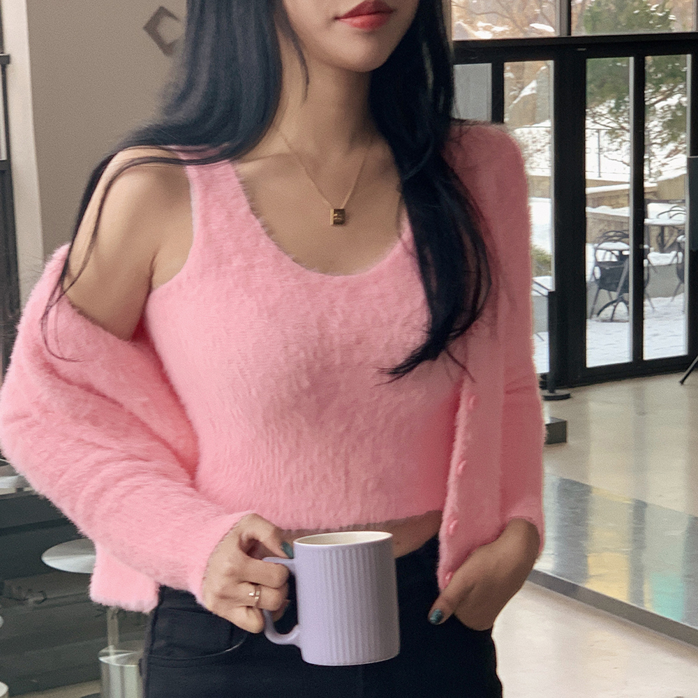 부드럽고 복슬복슬한 에코 앙고라 퍼 나시 + 가디건 조합!