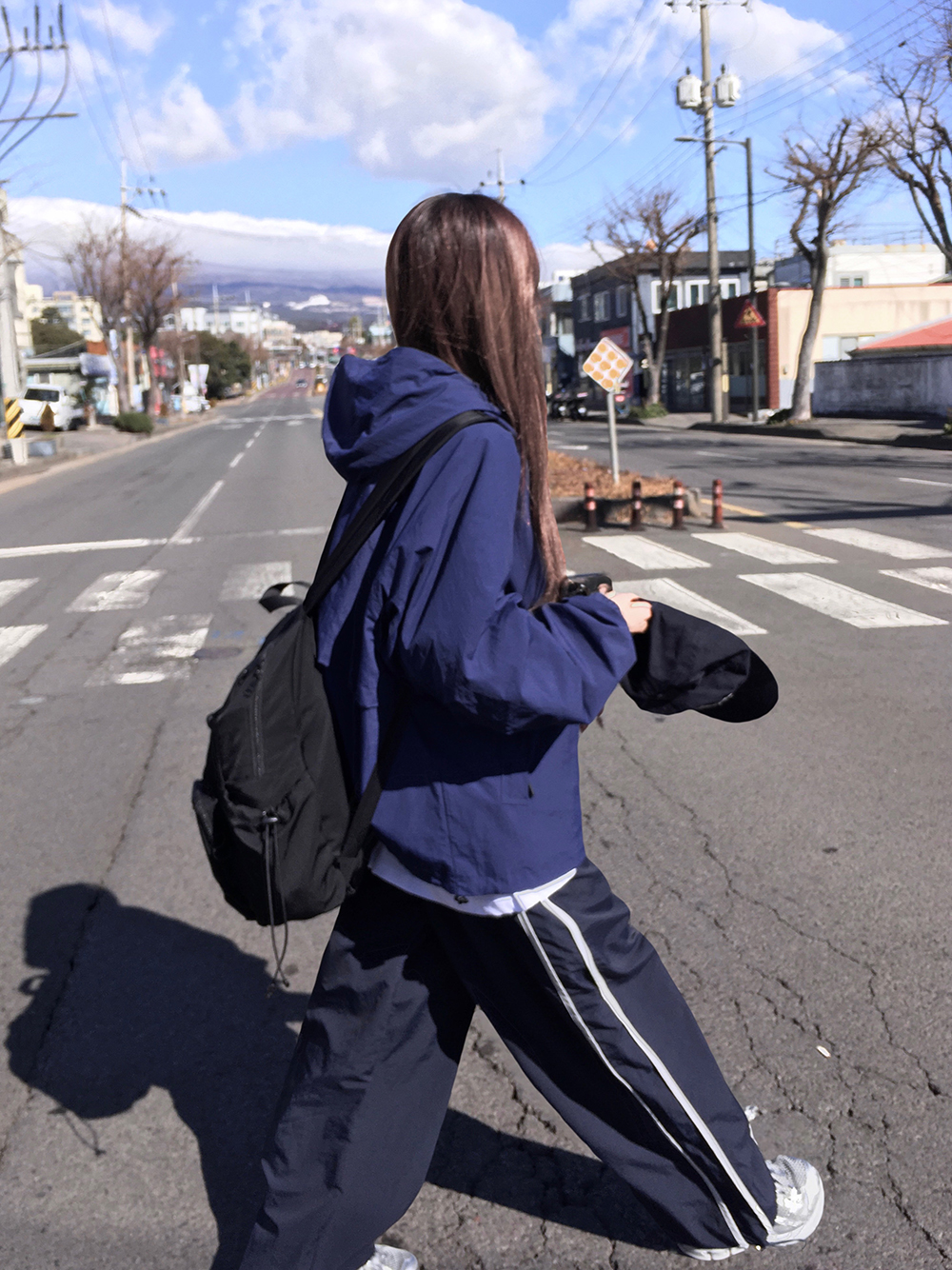162cm, 44kg (BROWN, NAVY 착용)