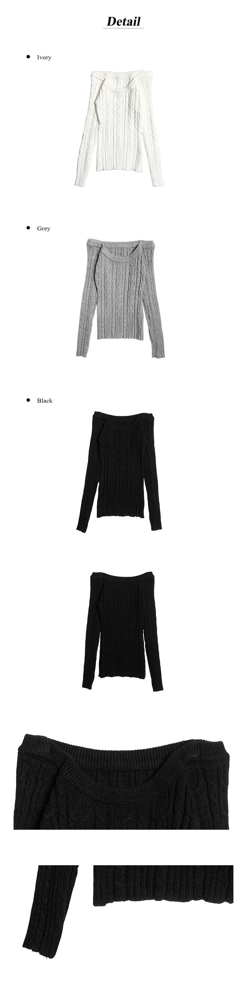 여리여리한 무드의 오프숄더 꽈배기 니트 티셔츠입니다 !