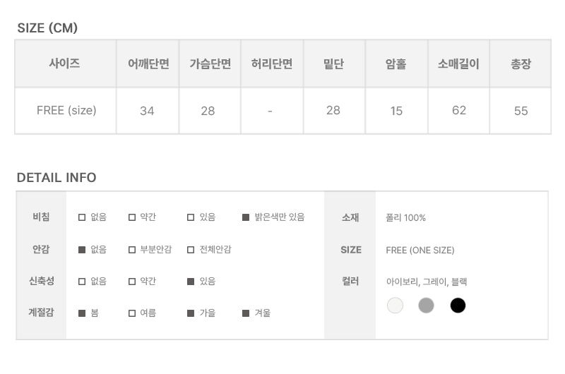 | 제품 측정 방법에 따라 1~3cm 오차가 발생할 수 있으며, 사이즈는 단면으로 측정됩니다 | ||||||
