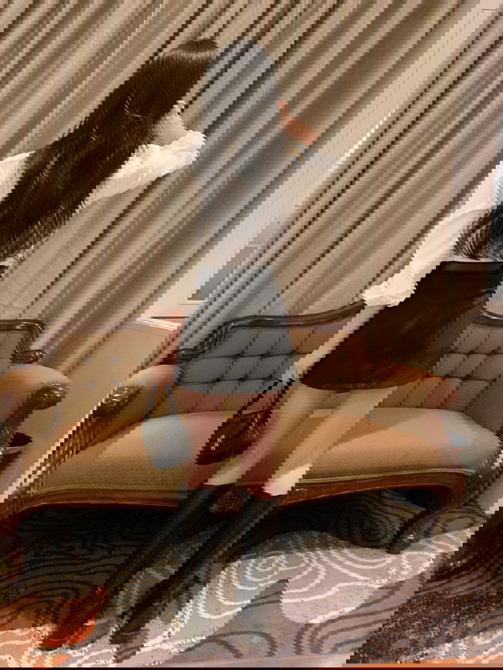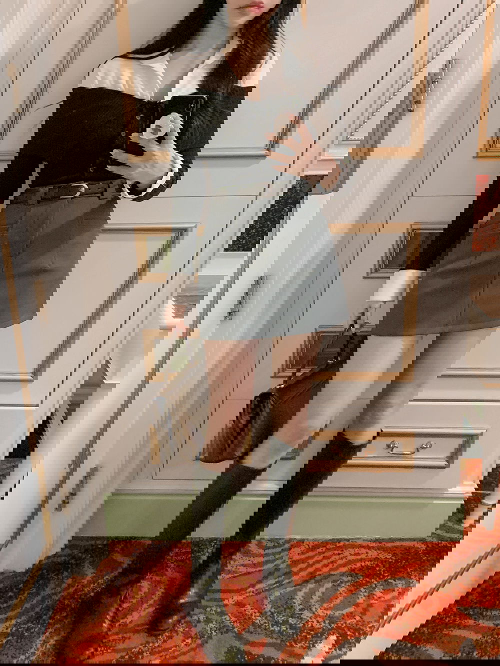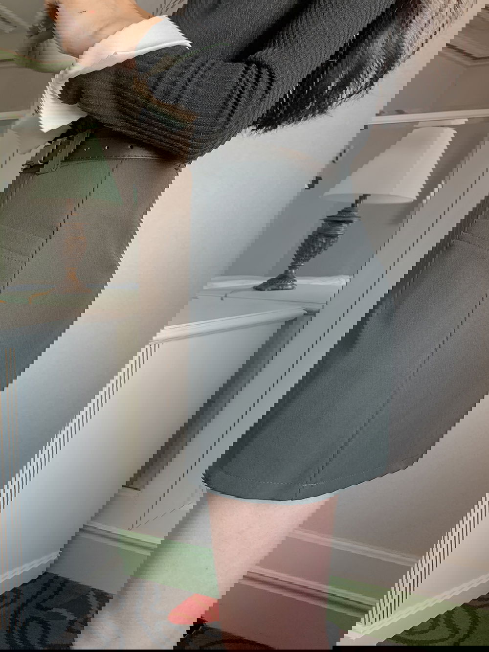 스커트와 동일한 컬러의 단추로 완성도를 높여주었답니다.