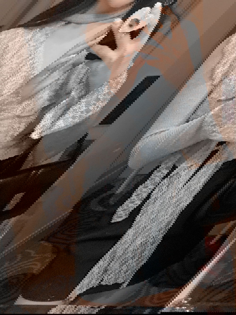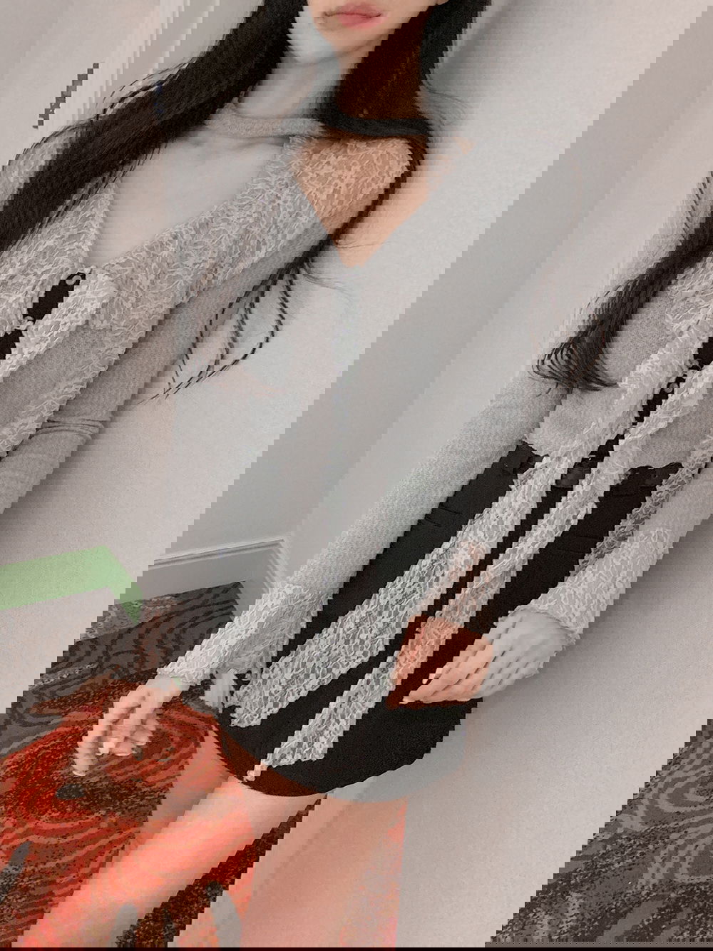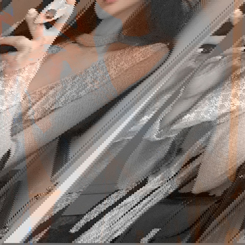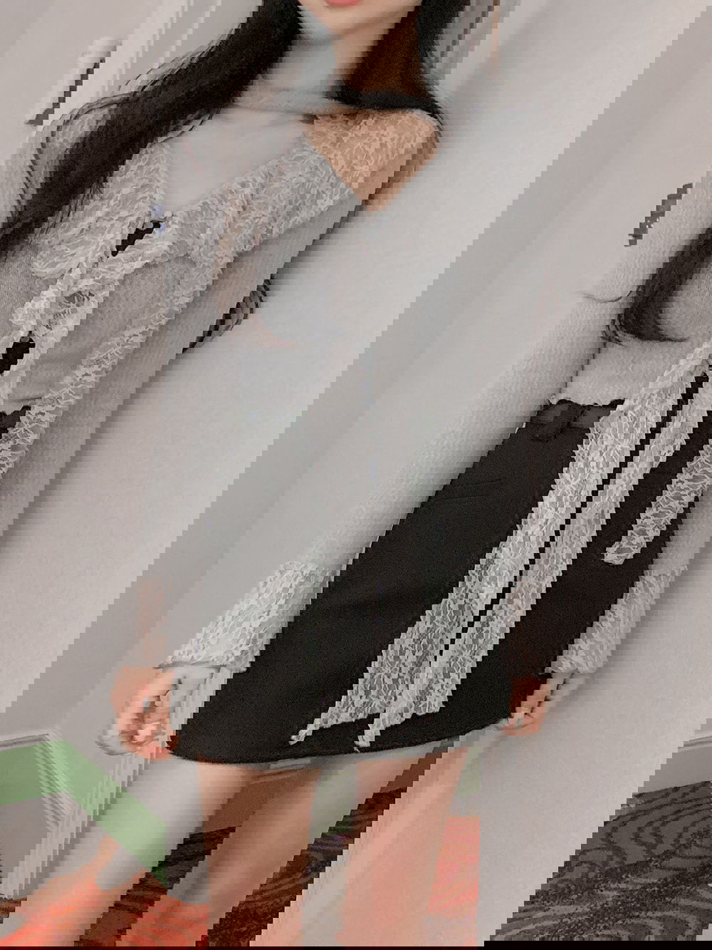 부케 레이스 프릴 cardigan (+머플러set) (그레이)