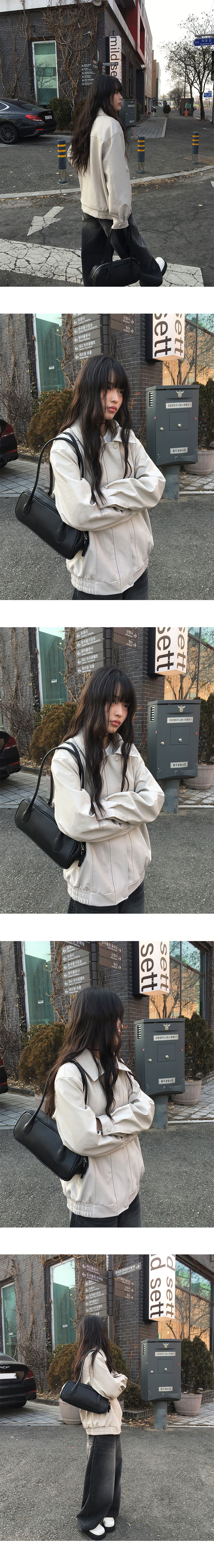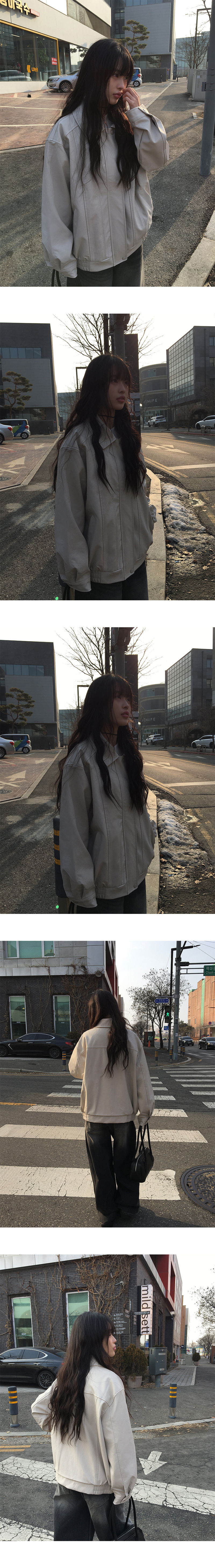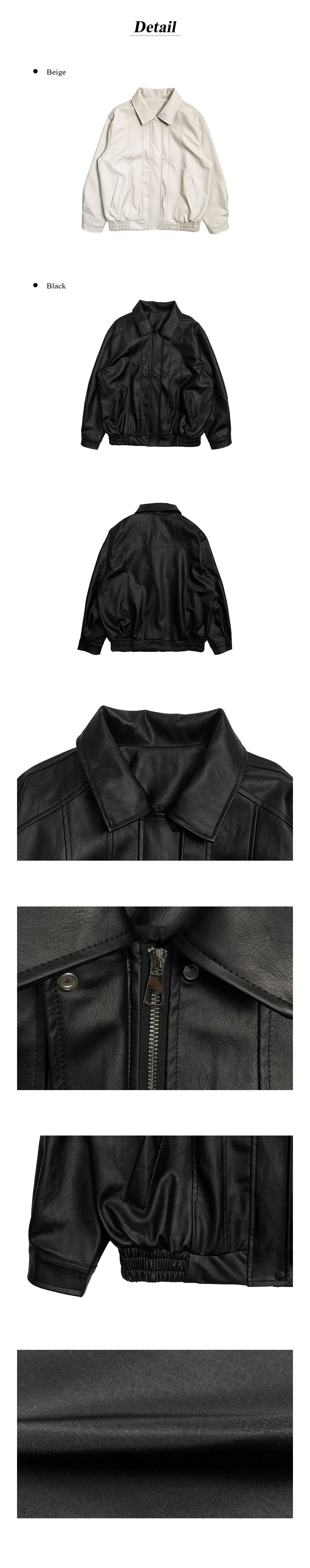 시크한 무드의 박시 레더 블루종 자켓입니다 !