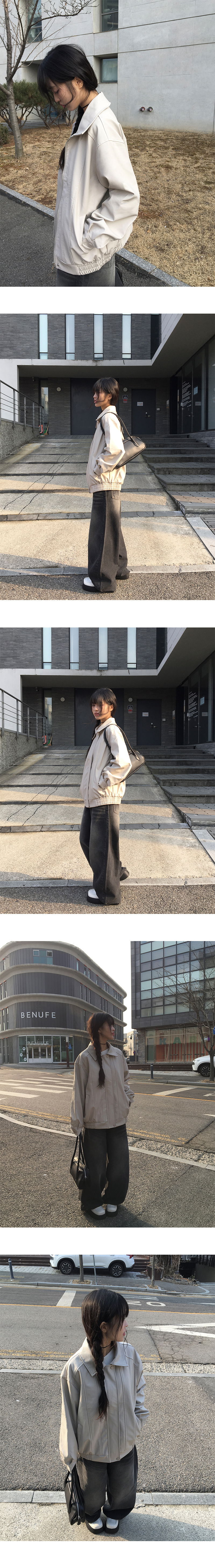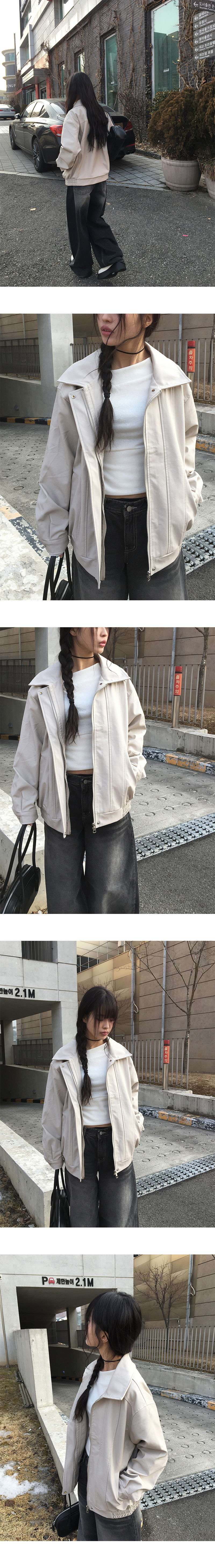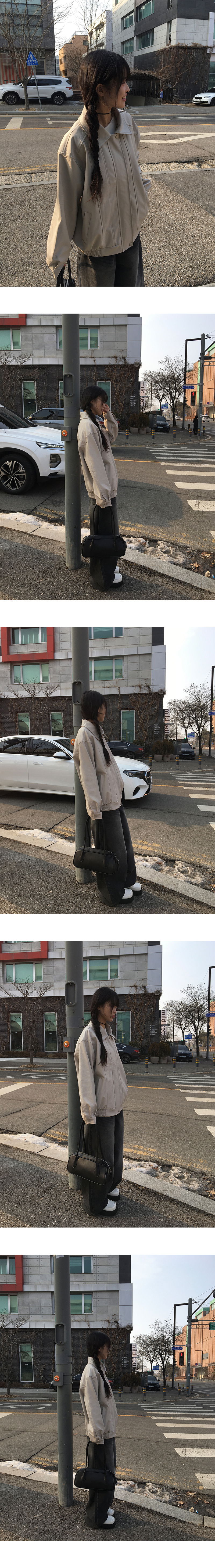 시크한 무드의 박시 레더 블루종 자켓입니다 !